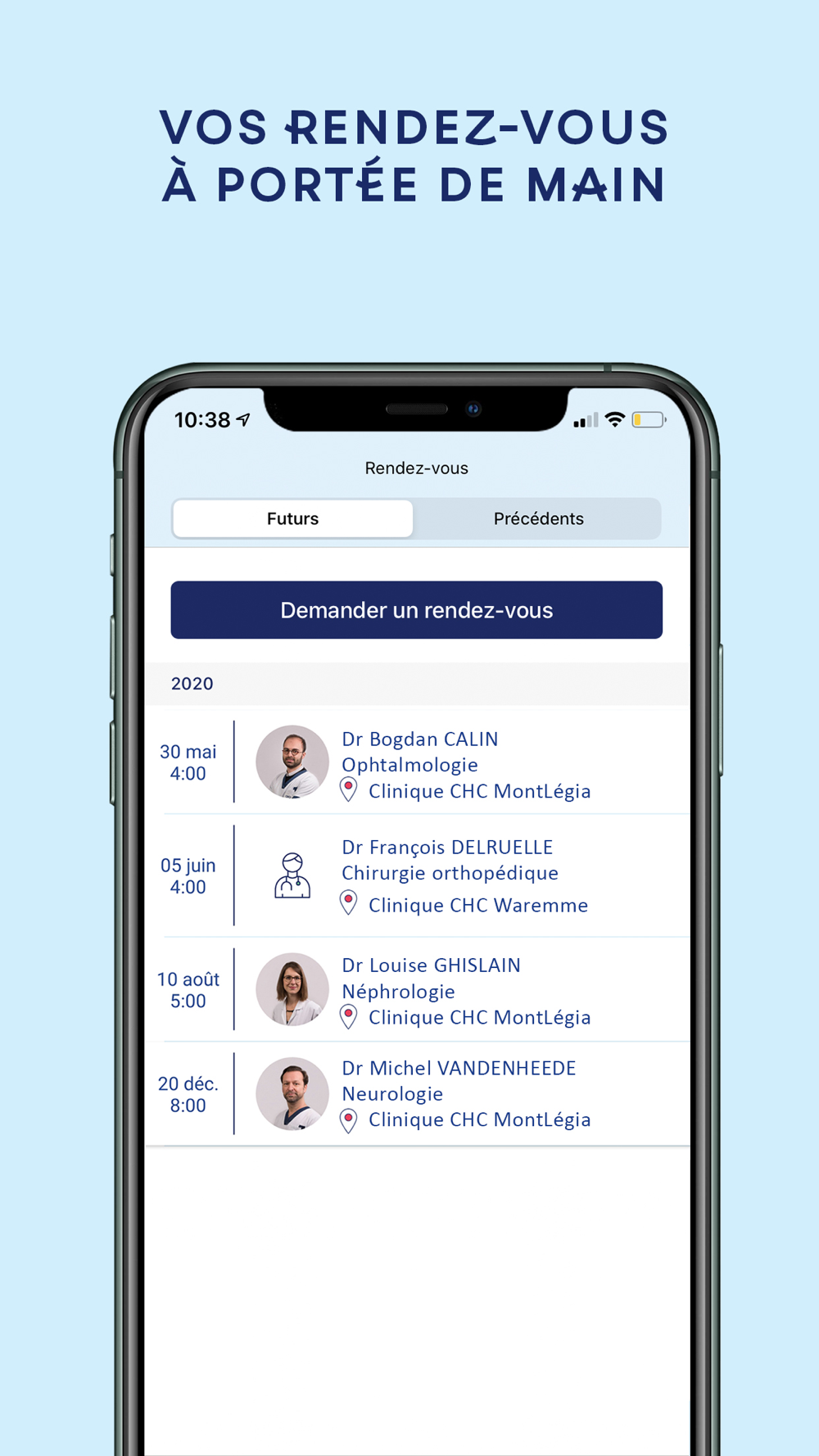 Gérez vos rendez-vous dans l’application :