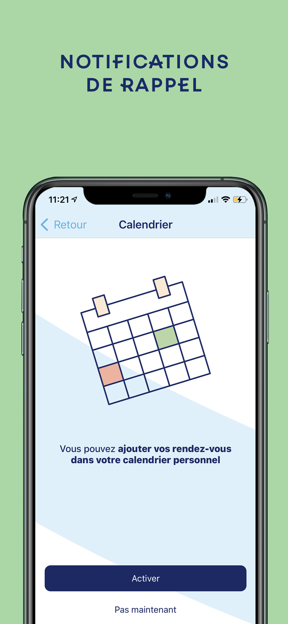 - Ajoutez vos rendez-vous dans votre calendrier personnel et activez les notifications