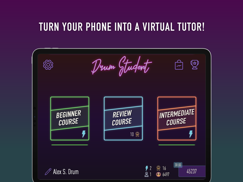 Use your phone to transform practicing into a fun and rewarding game experience. Shorten the learning process with accuracy tracking and instant feedback. Learn to read and play real sheet music to help you become the best drummer you can be!