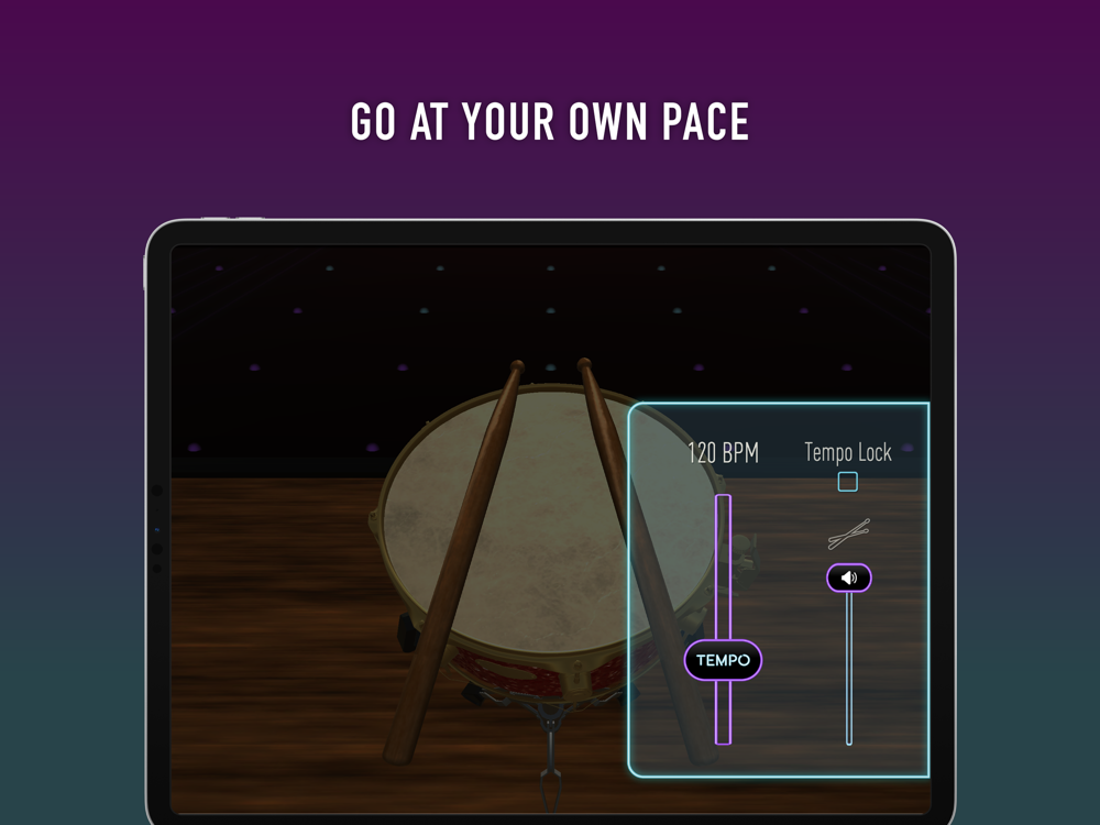 Adjust the tempo of each level to fit your skill level. DrumStudent saves your tempo for each level so you can pick up right where you left off. Beat your previous tempos to score again and again while you make real progress!