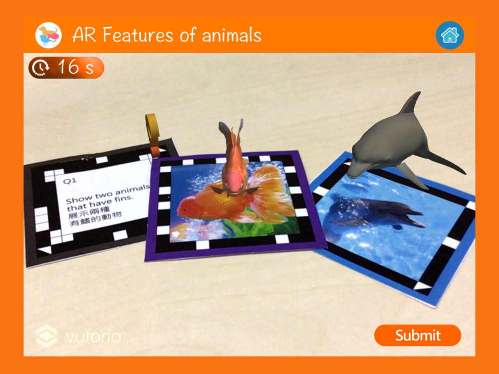 使用應用程式時需要配合AR 動物的特徵專屬的AR 活動卡使用,透過將正確的問題卡及答案卡配對來增強同學對分辨動物特徵的能力。務求做到幫助老師教學的同時,亦能夠滿足讓學生在家中自學的需要。
