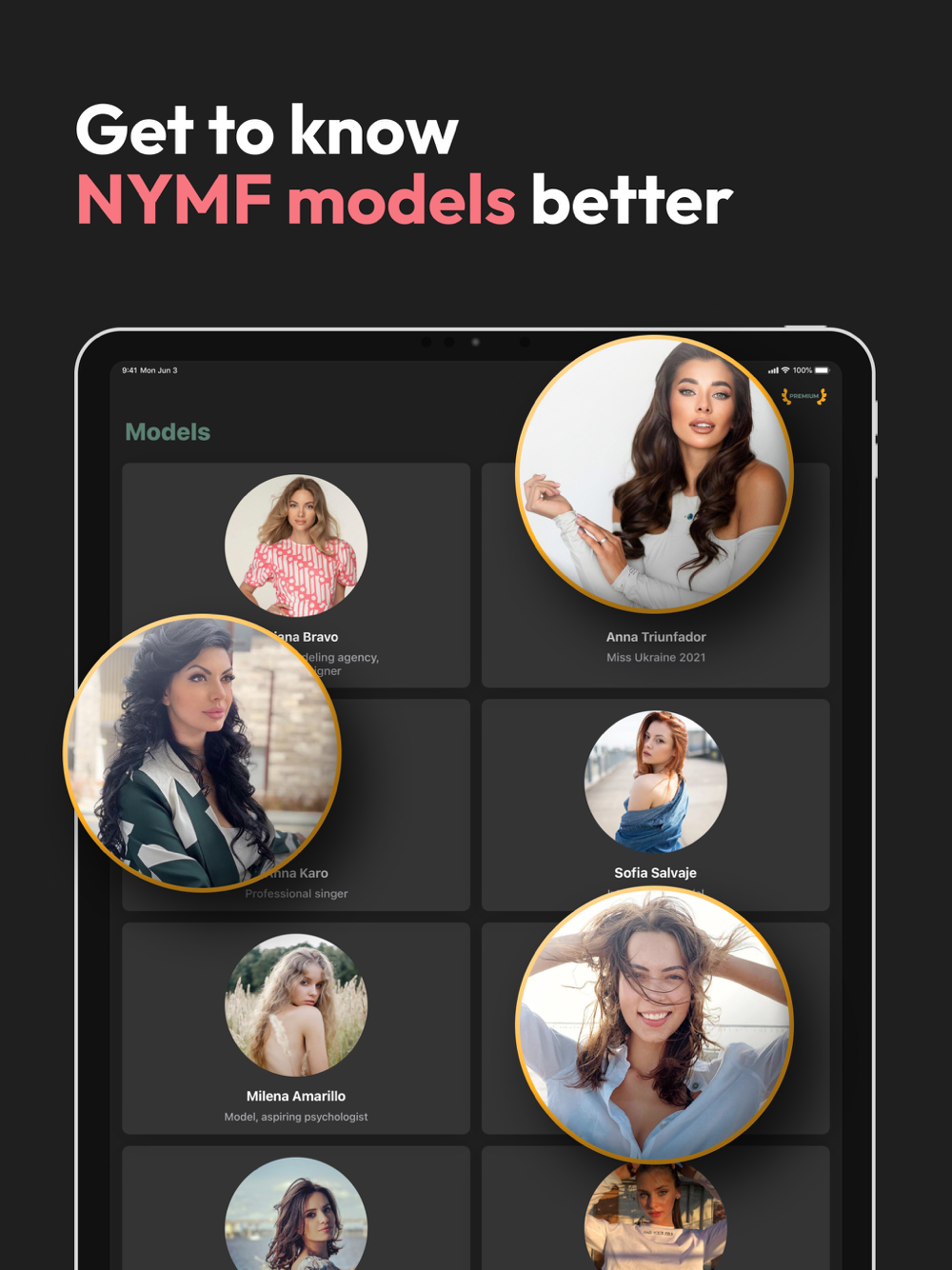 More photos, videos, and backstage featuring incredible NYMF models. The Models section gives you access to interesting facts about the models and links to their social media profiles.