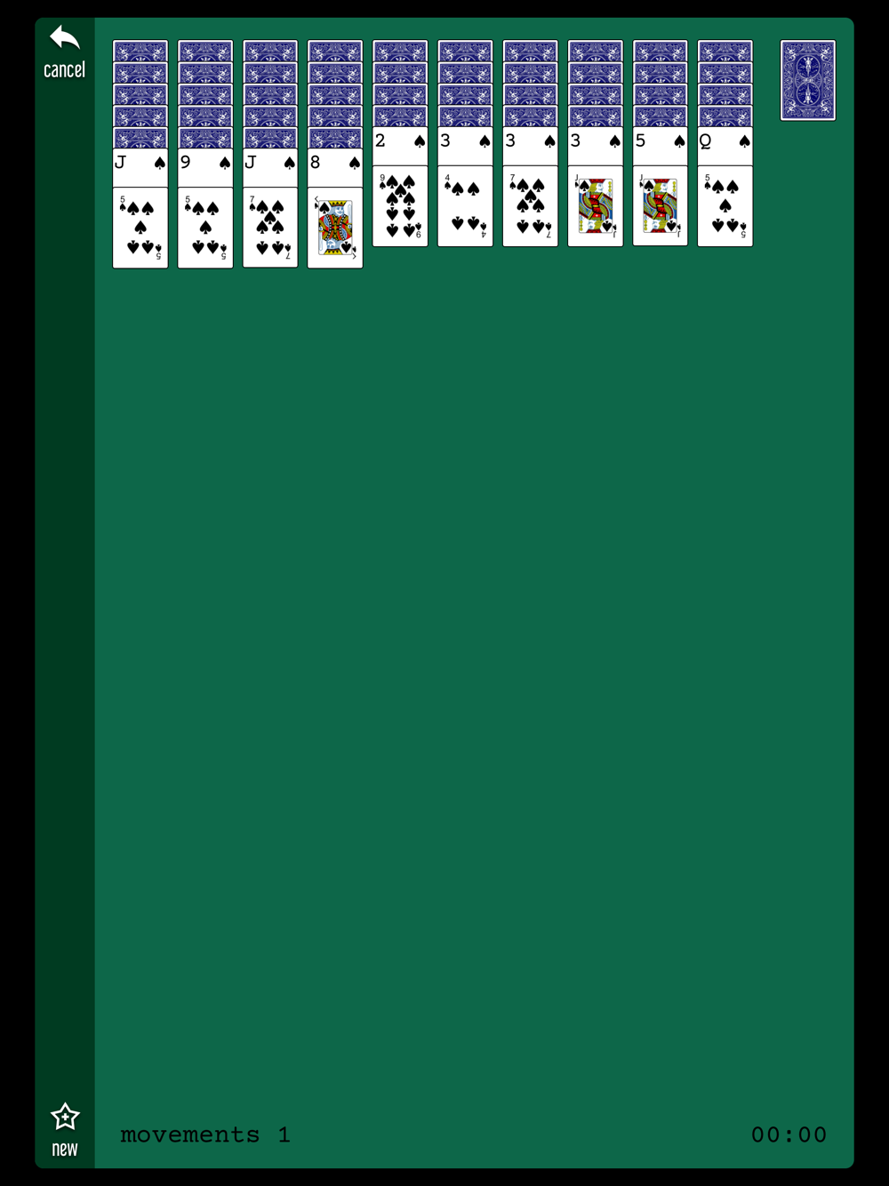 8. There are two variations of Spider Solitaire, namely Spider Solitaire 1 suit and Spider Solitaire 2 suit, the difference is in the number of color used, 1 suit only uses one color (hearts or spades or diamonds or clubs) and 2 suit uses two colors.
