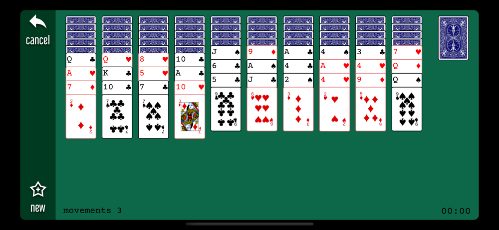 4. Cards can be moved between columns, but only cards of immediately lower value and the same suit can be placed on top of each other.