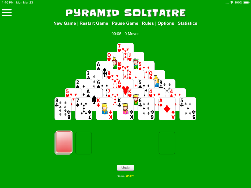 CardGames.io is a collection of all your favorite card games, solitaire and puzzle games. It features 35 different games including the card games Hearts, Spades, Cribbage, Euchre, Gin Rummy, Rummy, Pinochle, Thirteen (Tien Len), Crazy Eights and Go Fish, the solitaires Klondike (classic solitaire), FreeCell, Spider, Clock, Pyramid, and puzzle and board games like Backgammon, Reversi, Checkers, Chess and Yatzy.