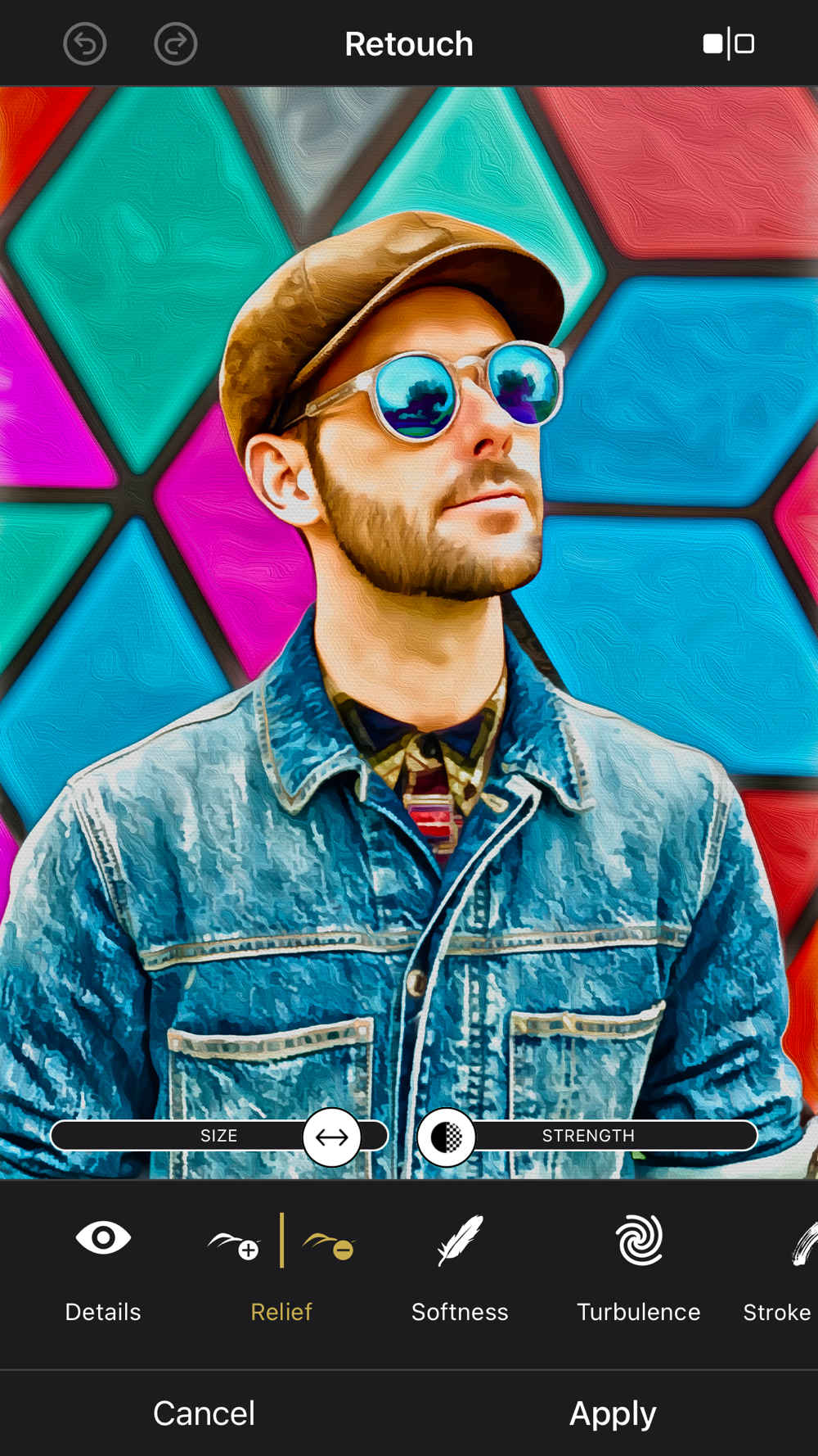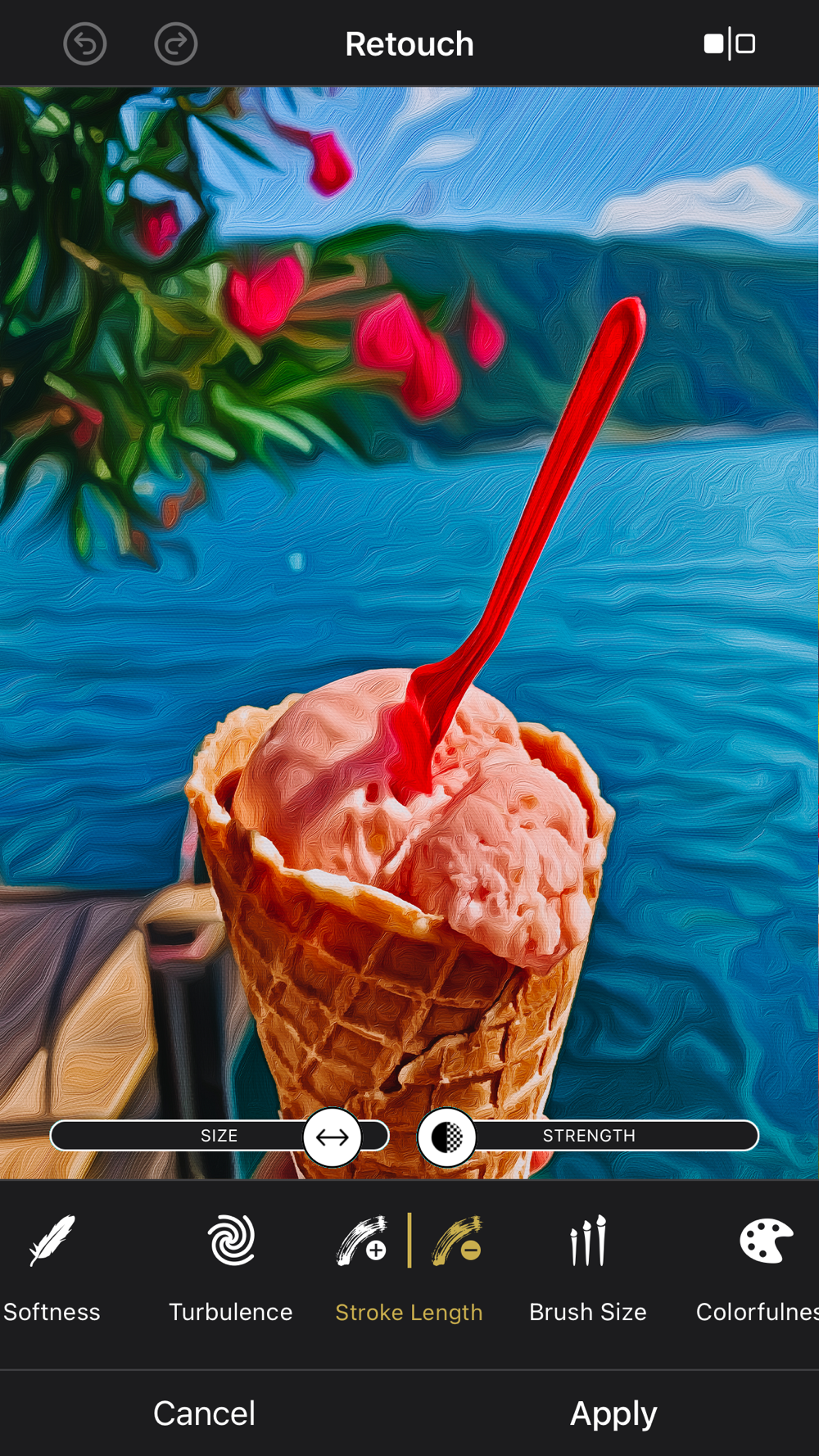 Your finger is your brush. Touch-up specific areas in your images that need attention. 12 tools allow to add or remove details, depth, relief, turbulence and much more. Oilbrush by BeCasso supports the Apple Pencil as well.