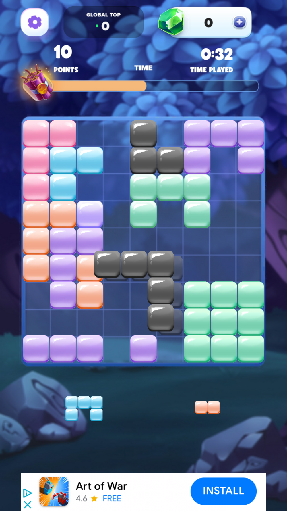 Fill in the grid with fun block shapes to make complete lines. The more lines the better! Feel a real thrill when you connect more than 1 line and earn more points. Choose between 2 modes depending on your time and mood: