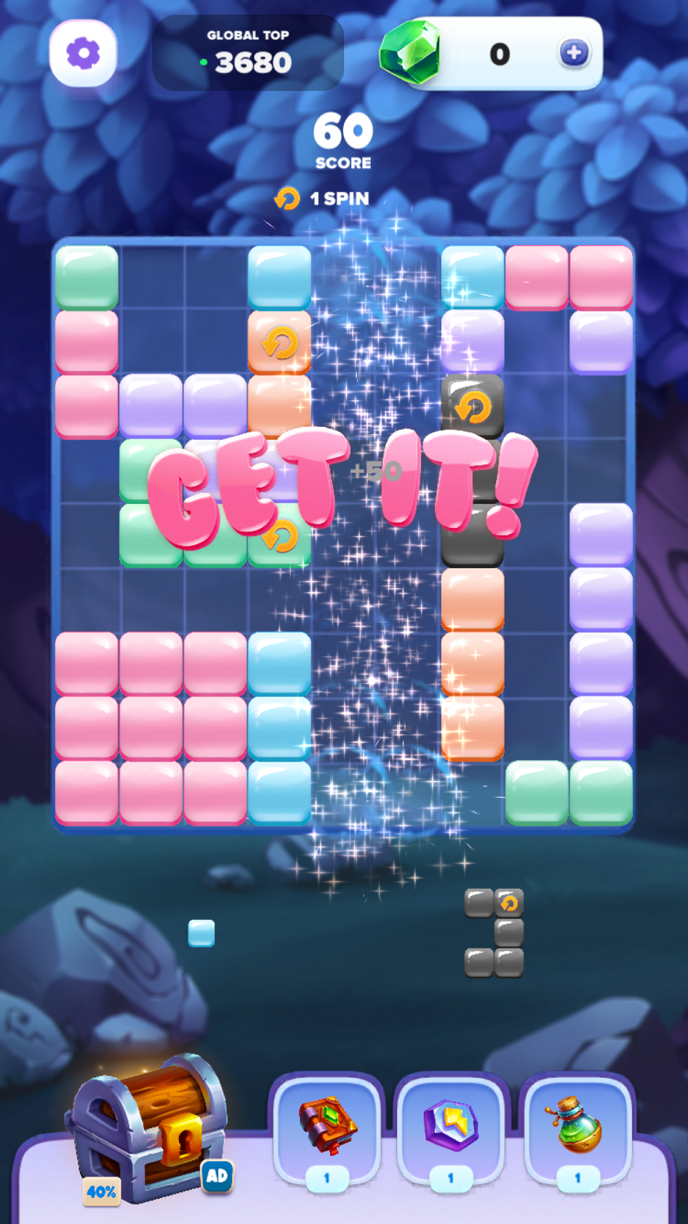 While calming and enjoyable, Enchanted Blocks is not an easy game. There will be tough times when you’ll be out of moves. Especially in the Time Crunch mode where you need to complete rows and lines quickly. For those moments, there is an inventory of magical boosters that will make the game easier for you. Make use of: