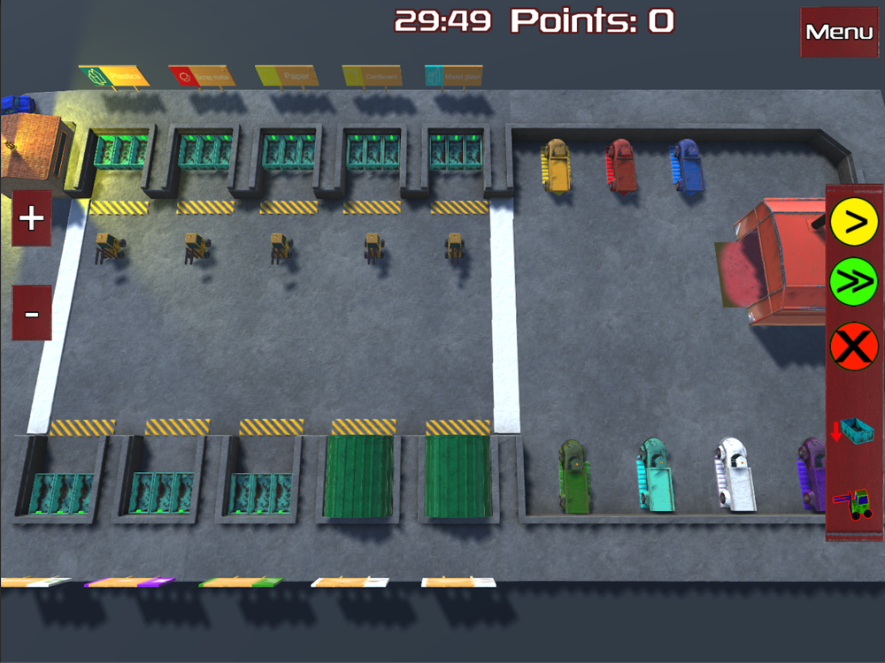 Set the waste to correct place. Cars are coming with different types of waste and you need to choose in which zone it must be set. By pressing on the control house when the yellow light is fleshing you can choose in which zone you will send the actual car.