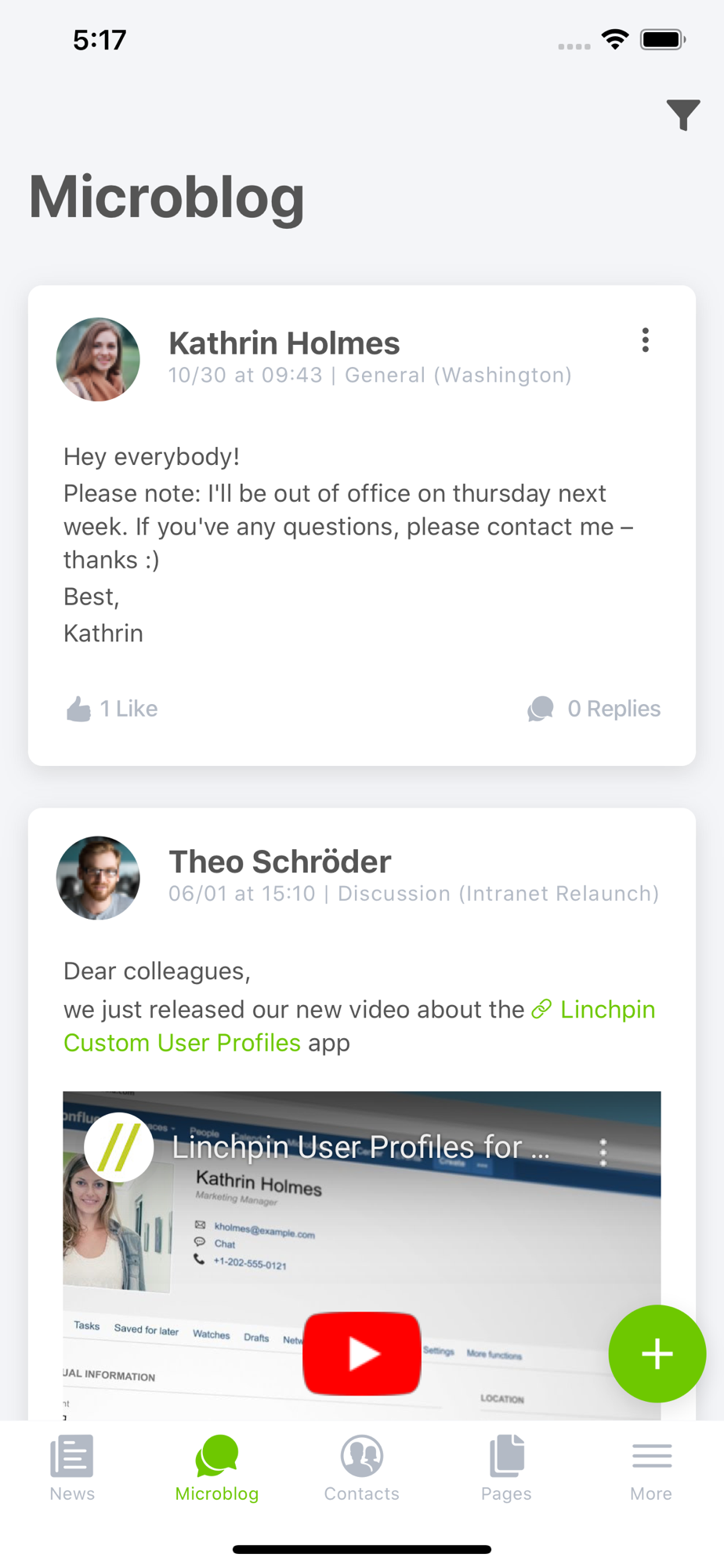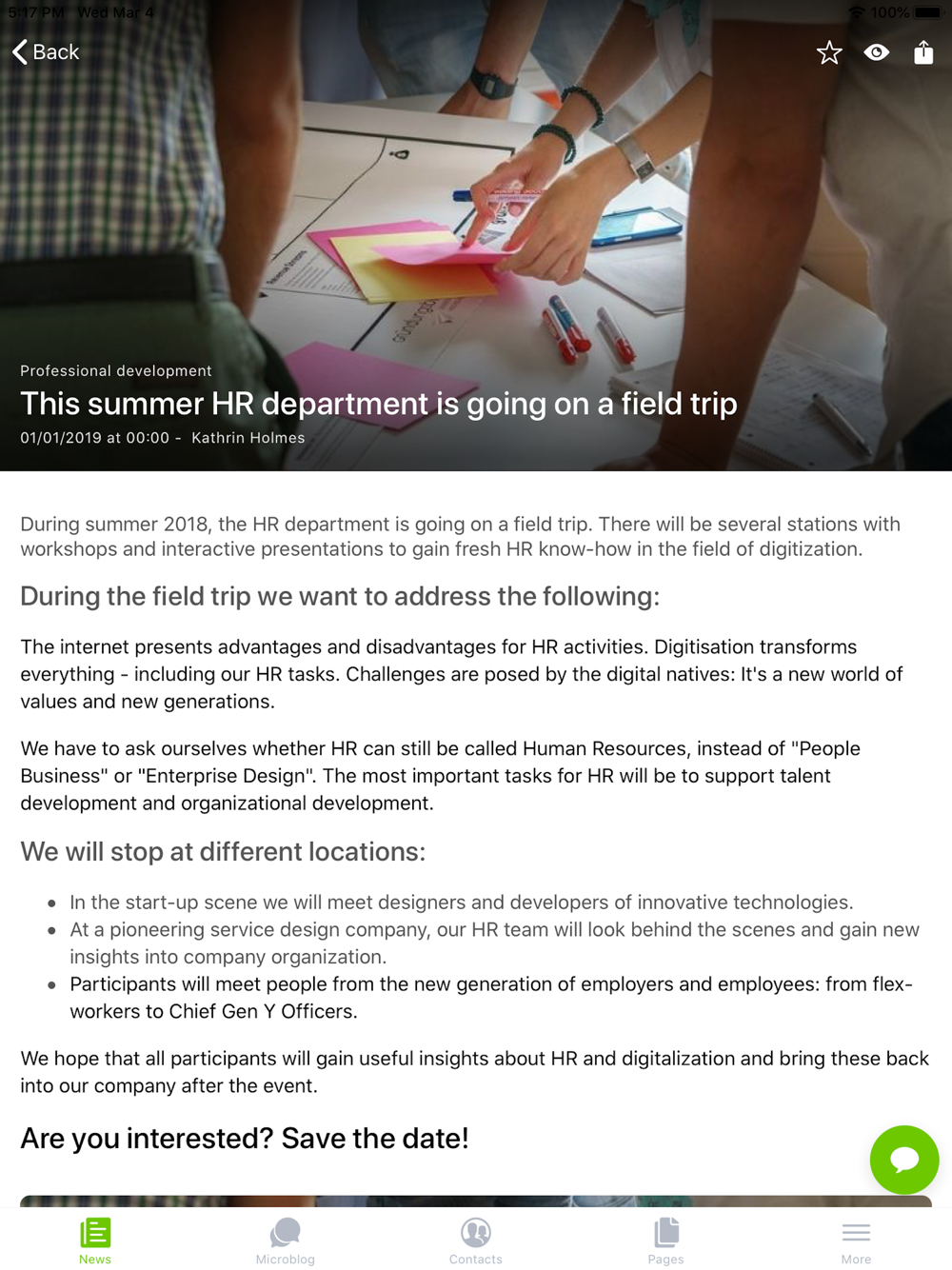 Check for news and microblog posts on the go and join the discussion! Sharing important announcements, interesting news or ideas has never been easier.