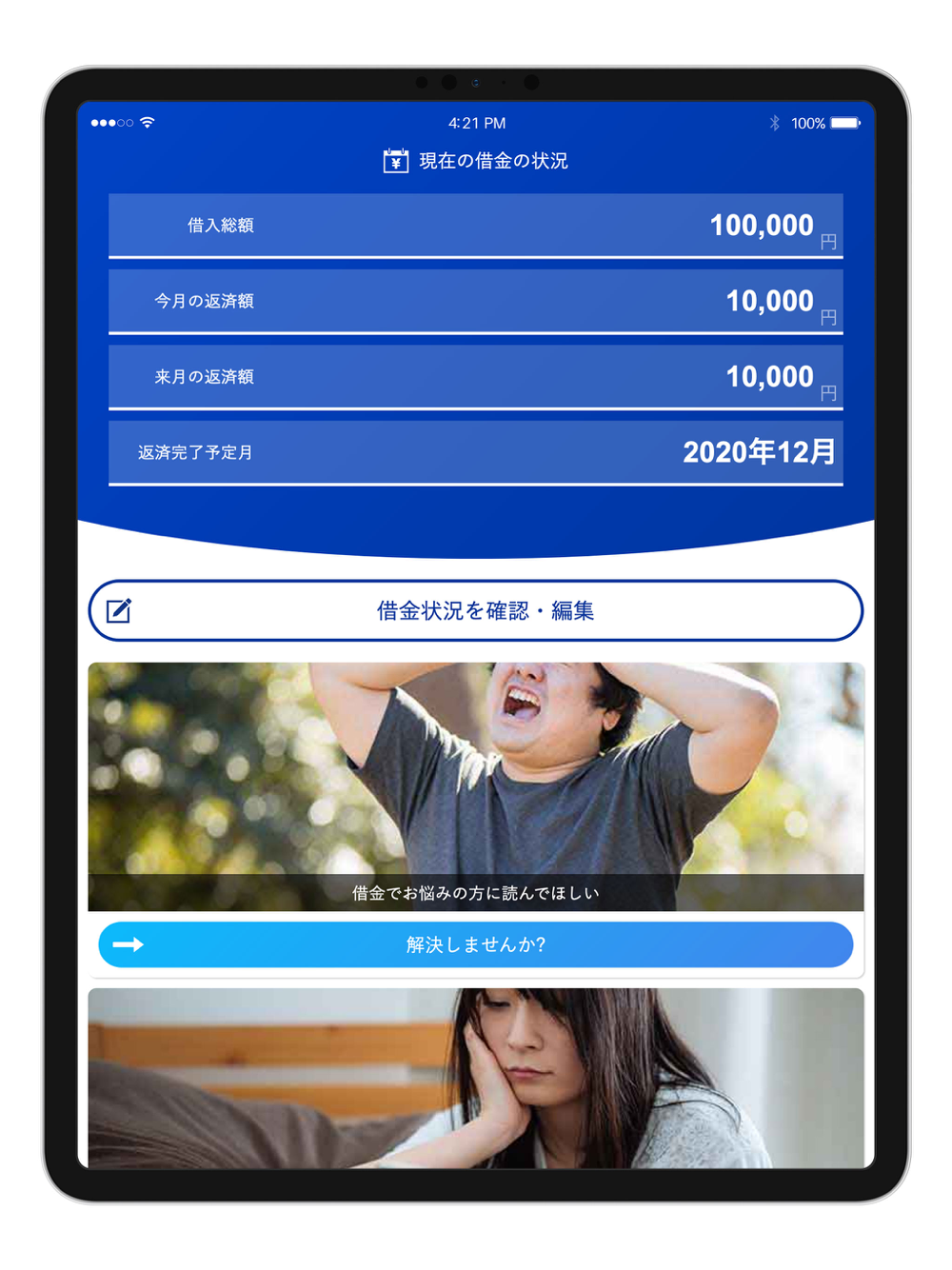 現在の借金と、毎月の返済金額を入力→返済完了予定日が明確に
