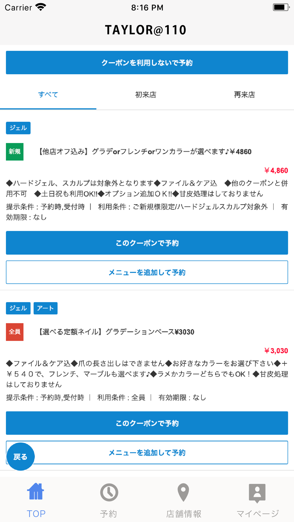 お得なクーポンが配信されます。ネット予約時にクーポン利用での予約も可能なので来店時もスムーズに施術頂けます。