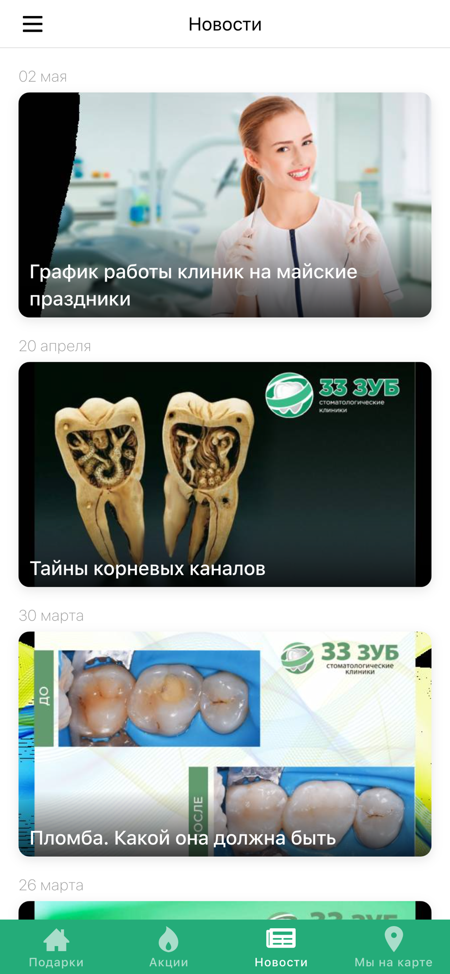С приложением "33 Зуб" вы сможете следить за актуальными новостями стоматологической клиники, обновлениями, получать уникальные предложения.