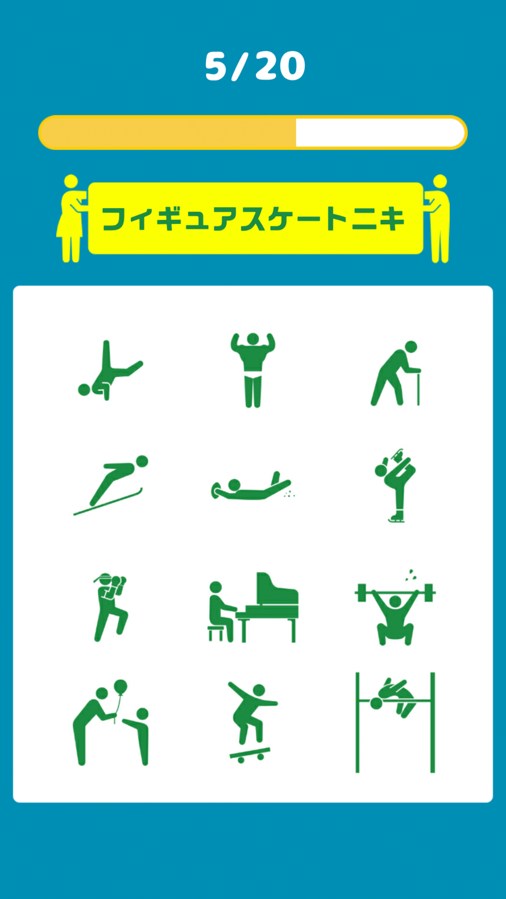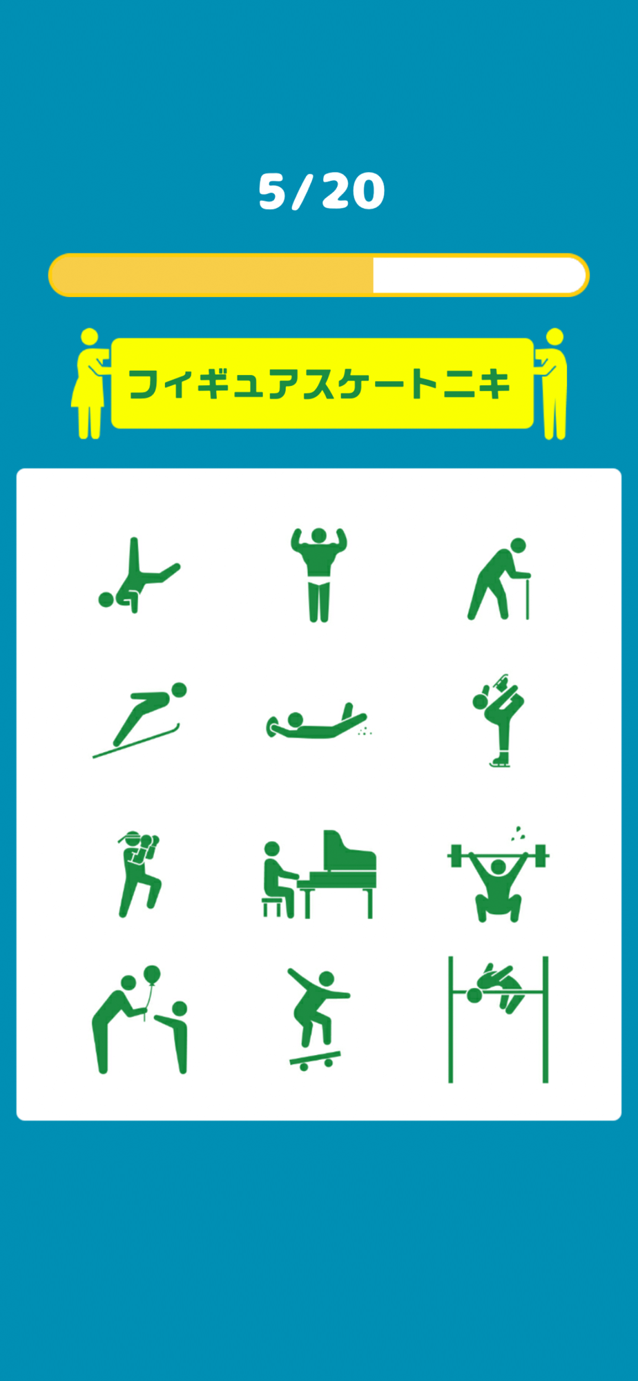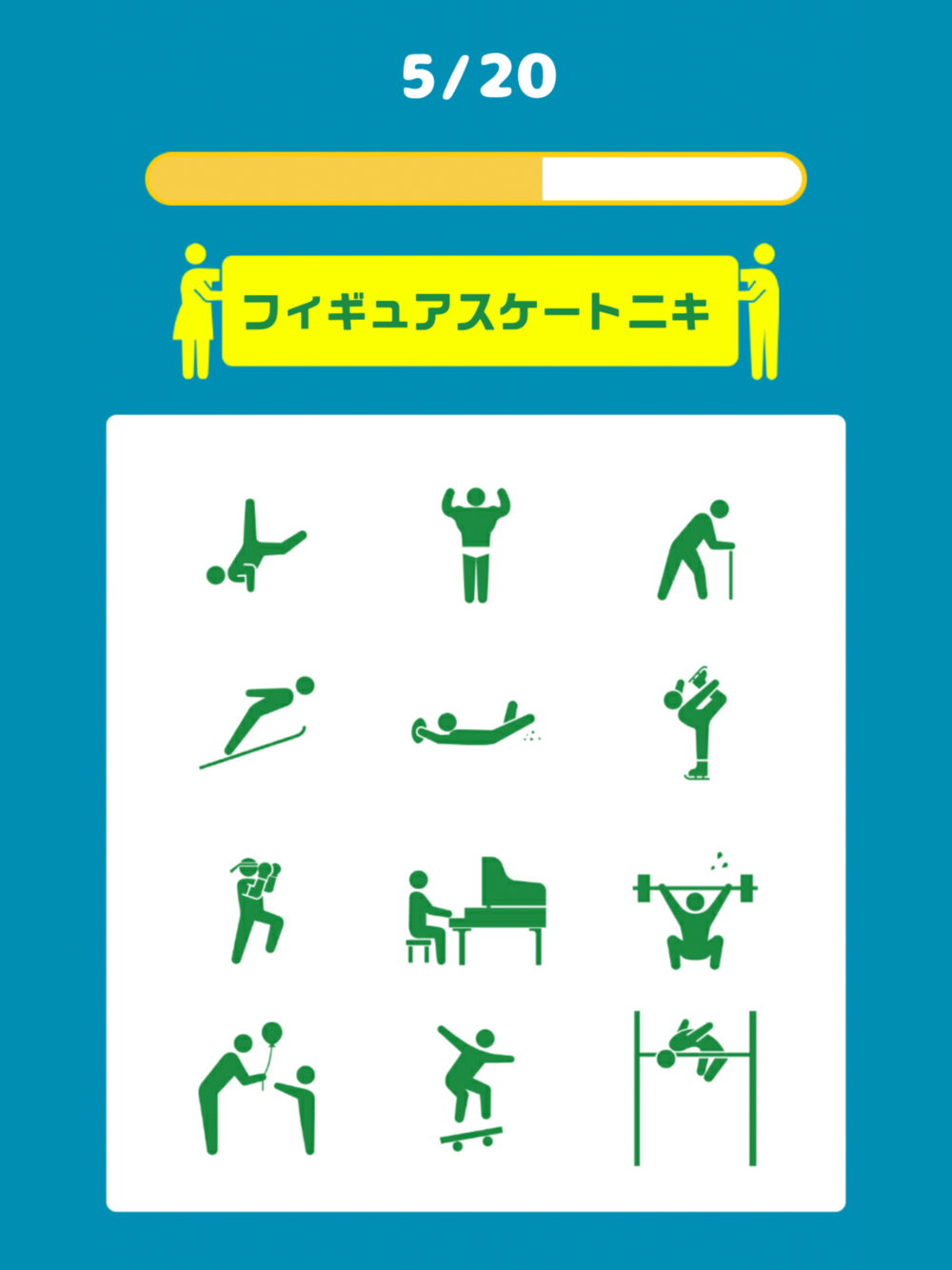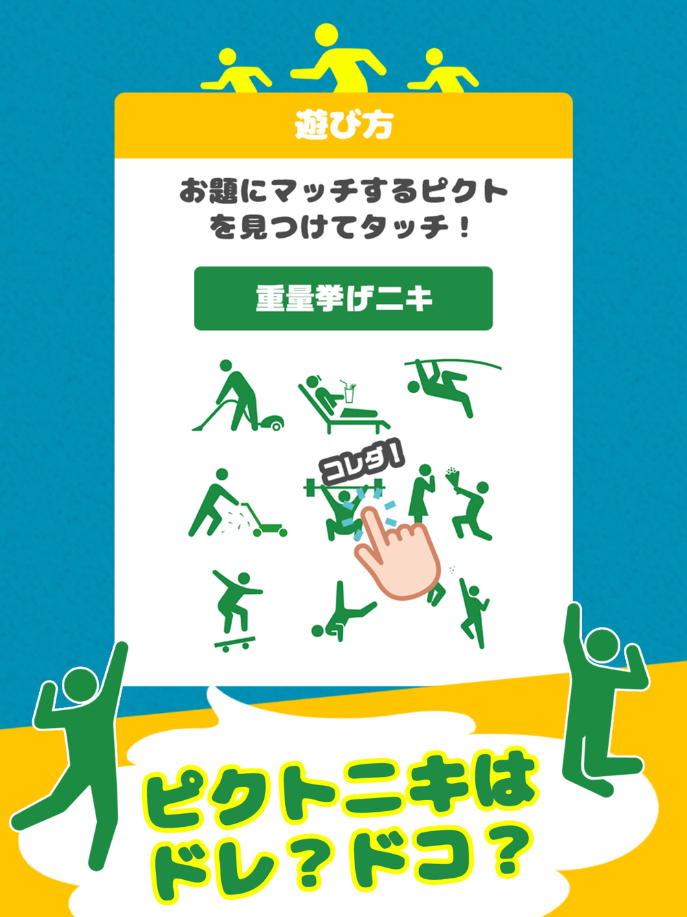 色んなポーズのピクトの中から同じものを見つけてタップ!