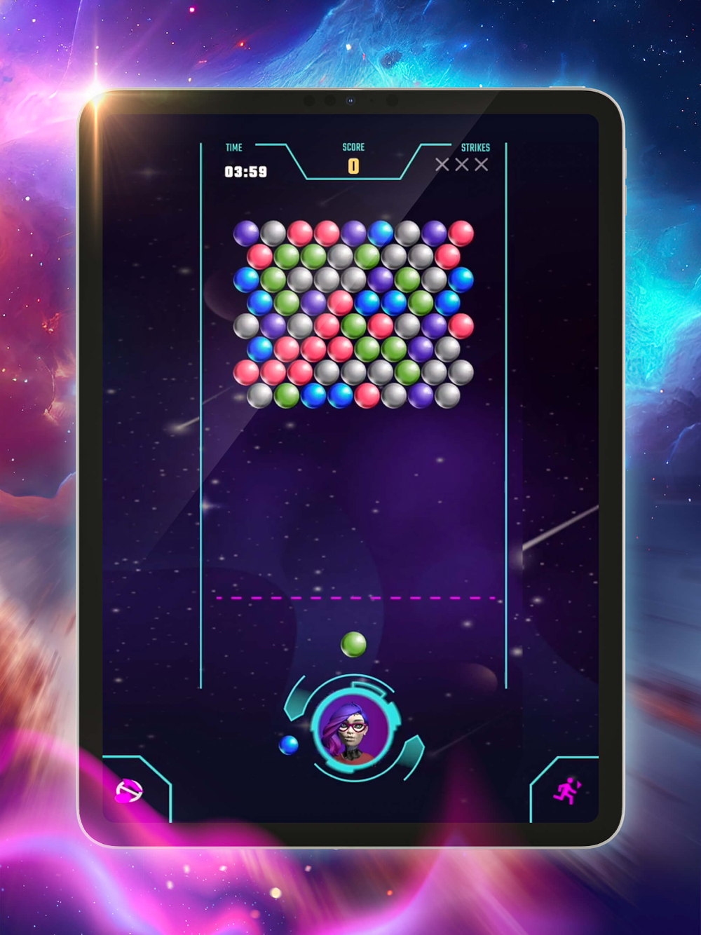 - Match 3 Bubbles of the same color to pop & blast them away and clear the board.