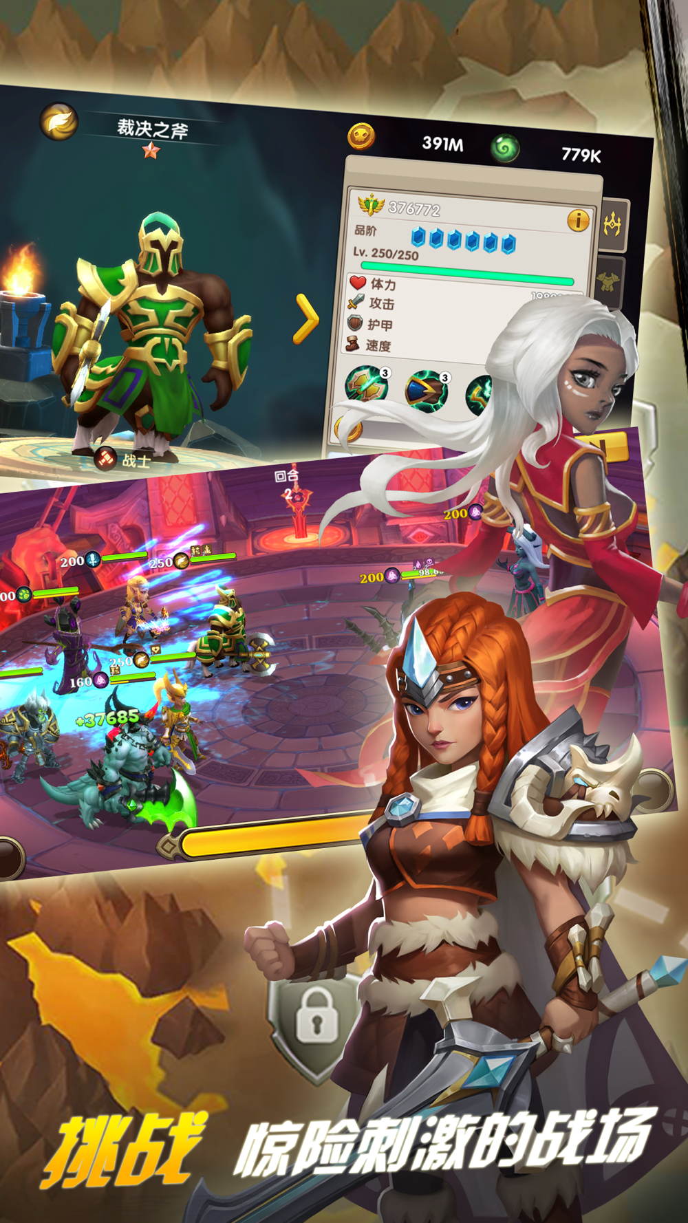 上百位各具特色,技能各异的英雄,可以通过召唤、抽卡、活动等各种方式获得,要了解他们的特色,不同的职业、阵型、搭配就可以获得不一样的战斗策略,你需要的就是发挥你的战斗头脑。