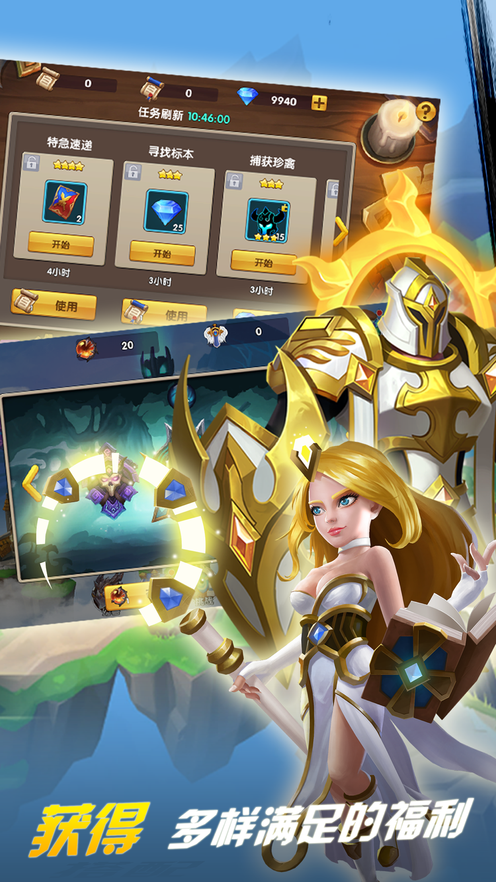 各种各样的奖励和福利充斥在游戏中,只要你每天坚持上线,就可以获得各种福利和奖励,钻石,金币,高抽币,转盘币,道具,装备,甚至五星角色,只有你想不到,没有得不到!