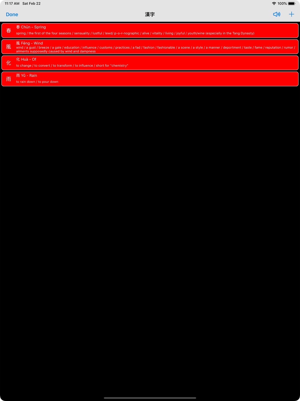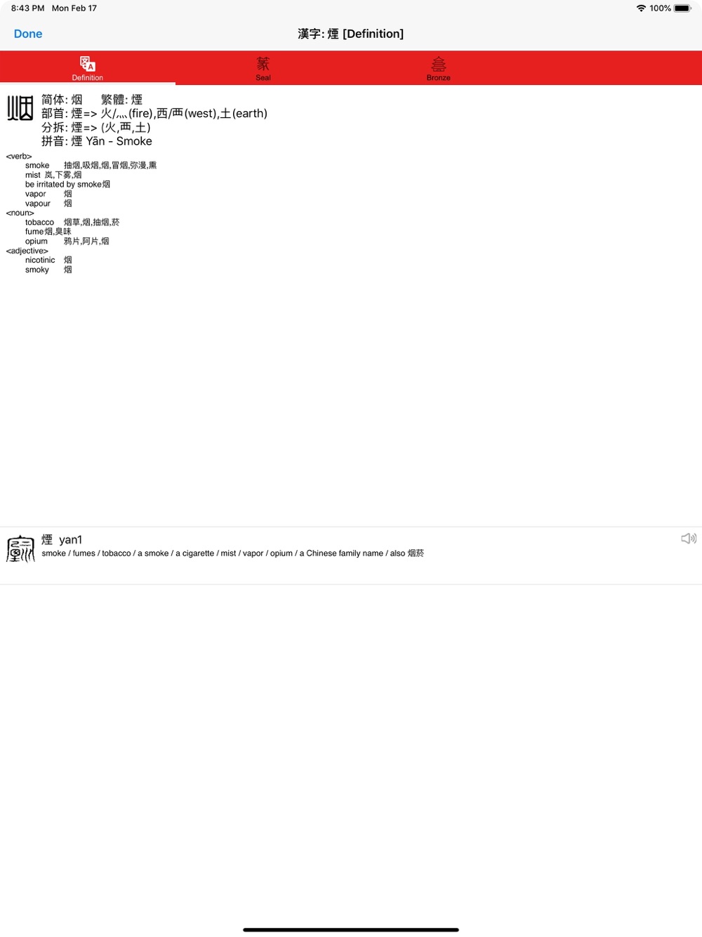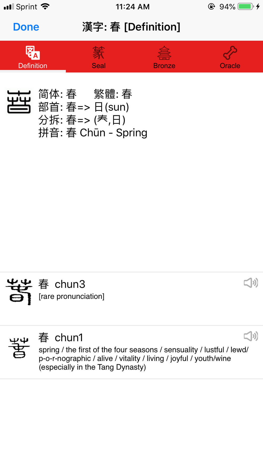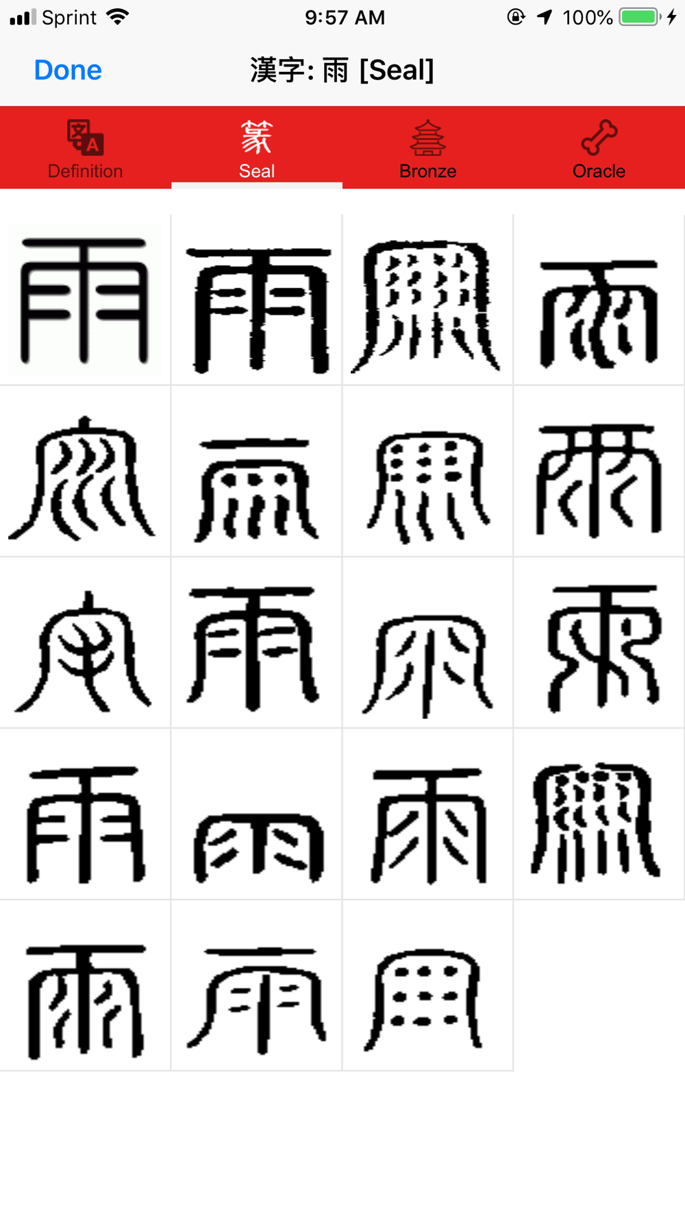 汉字应用是汉字的学习工具。您将通过手机或平板电脑了解有关汉字的更多信息。助您了解汉字的普通话/国语拼音,其含义,发音,书法和词源。同时了解古老的甲骨文,钟鼎文,和篆文等各种字体。