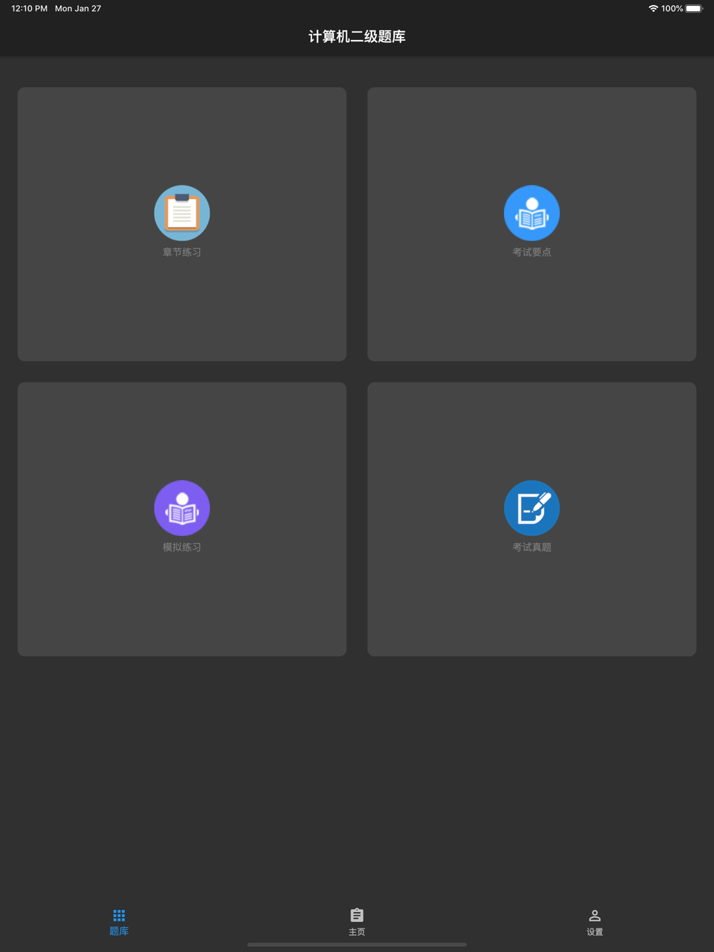 章节练习、考试考点、模拟试题、历年真题4大模块,适合全国计算机等级二级考试。