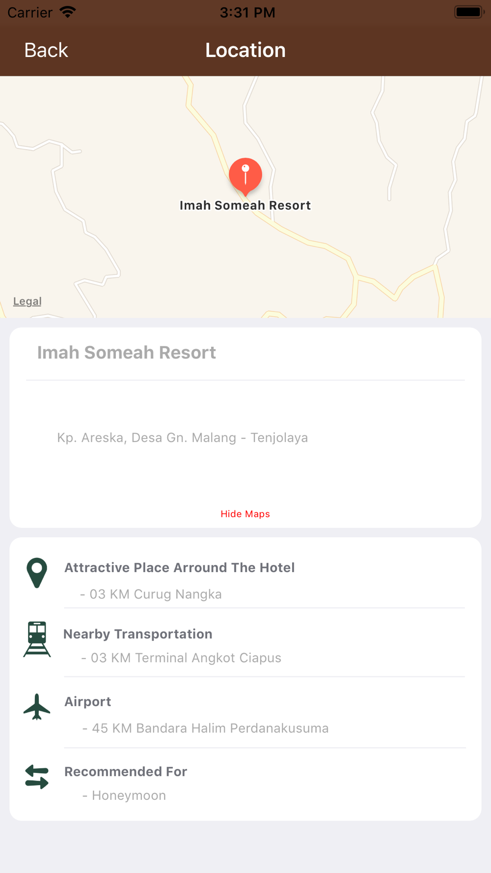 Hadir di sebuah destinasi wisata menakjubkan, dikaki gn salak, dikelilingi oleh 4 curug serta situs Cagar alam budaya, para tamu resort akan merasakan pengalaman beristirahat yang tenang dengan paduan pemandangan alam dan pemandangan kota jakarta dengan gemerlap lampunya dimalam hari. Dari lokasi yang yg tinggi, para tamu berada dalam jarak dekat dengan pemandangan Gn Salak yg berkabut.