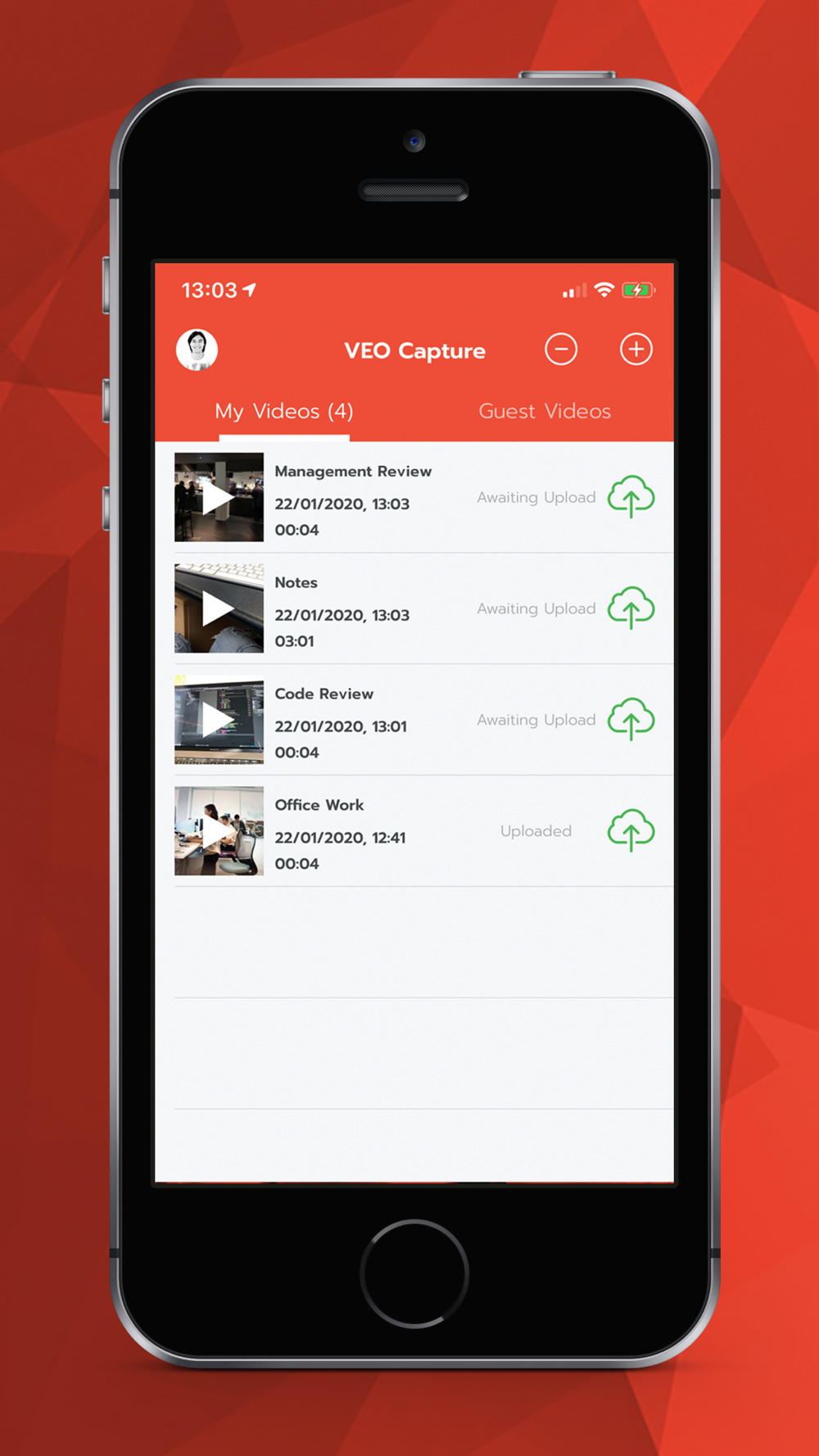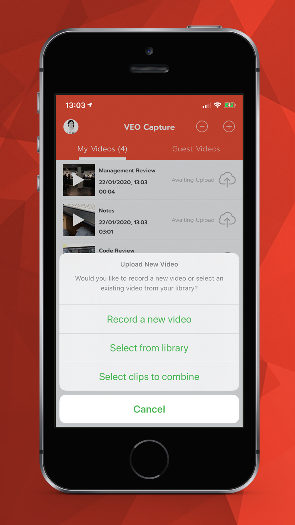 Use the video recorder within the app for simple, quick and completely secure uploading straight to your VEO account.