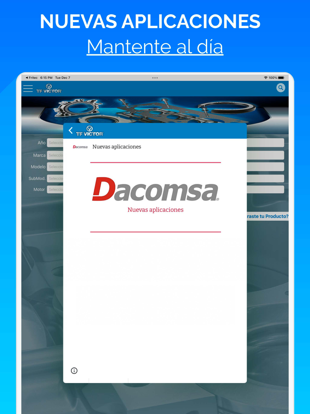 Aplicación diseñada para satisfacer las necesidades del mercado para reparación de motores con productos de sellado TF Victor.