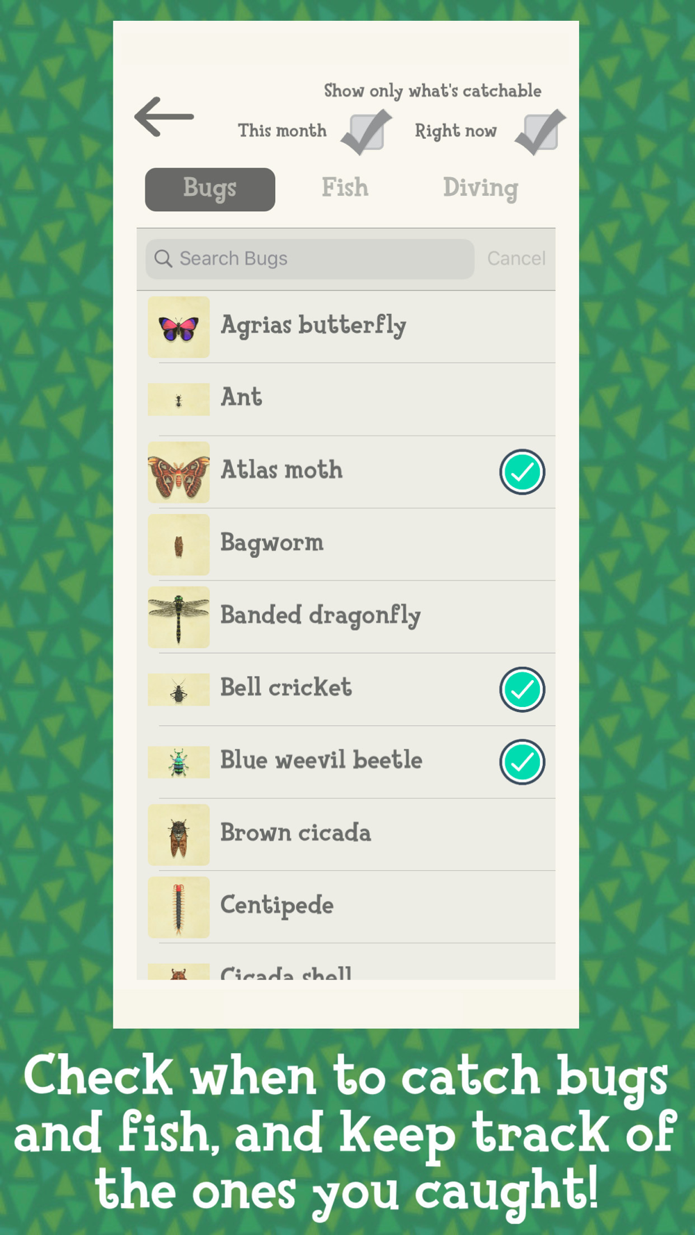 - Learn when to catch all the bugs and fish, and keep track of what you've already caught