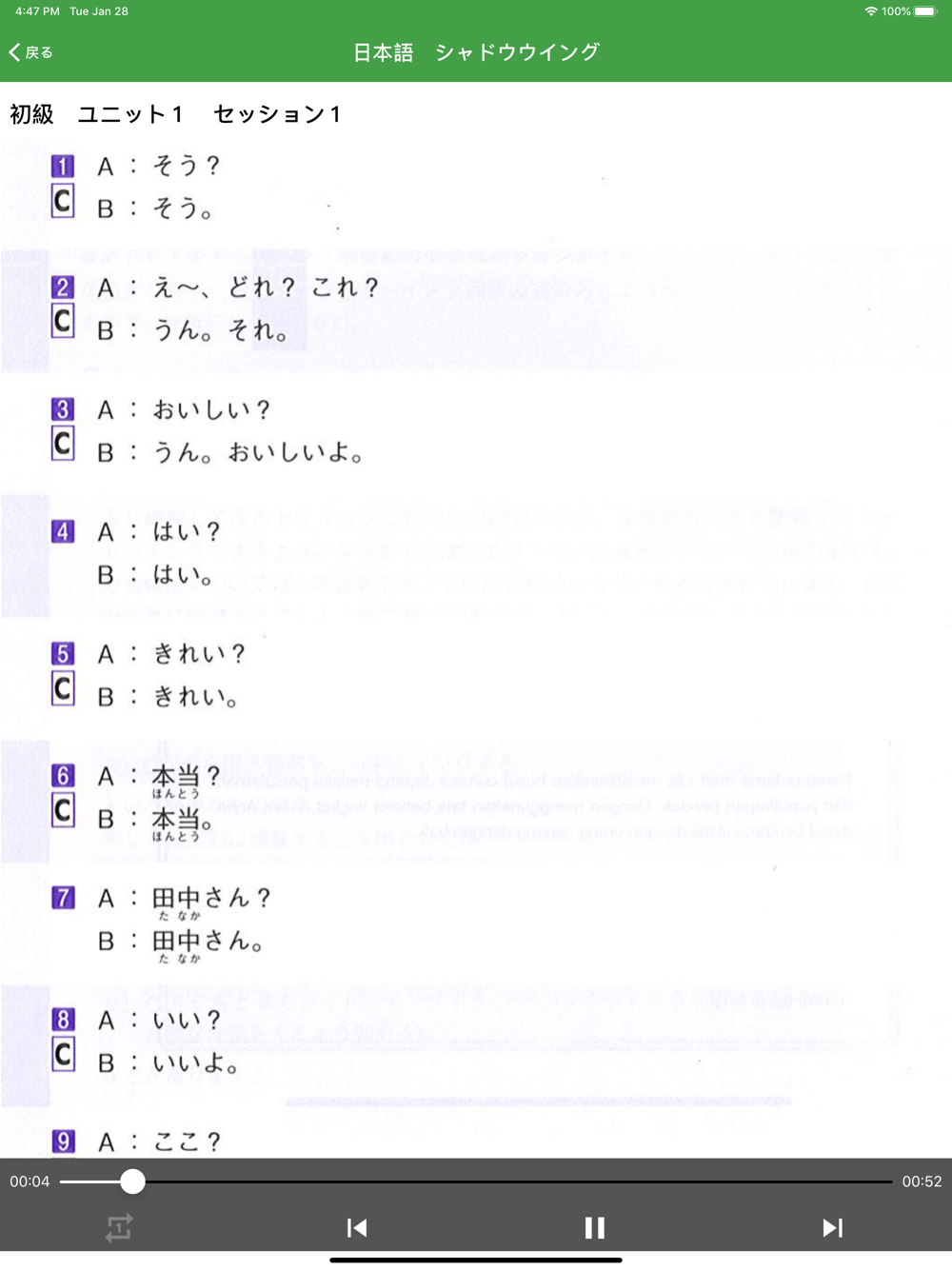 シャドーイングの方法は、文を聞いてから聞いた内容を繰り返し、次に聞いて繰り返すのと同じくらい簡単で、シンプルですが非常に効果的です。 聞いたことを正確に繰り返すことで、日本語の発音能力を高め、イントネーションをネイティブ日本語のようにより正確で自然なものにするのに役立ちます。