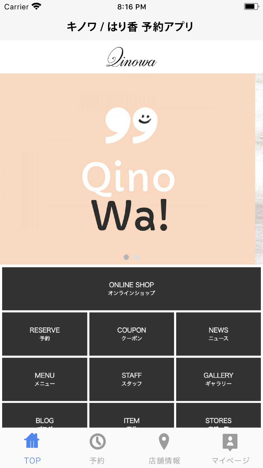 キノワ/はり香の公式予約アプリです。