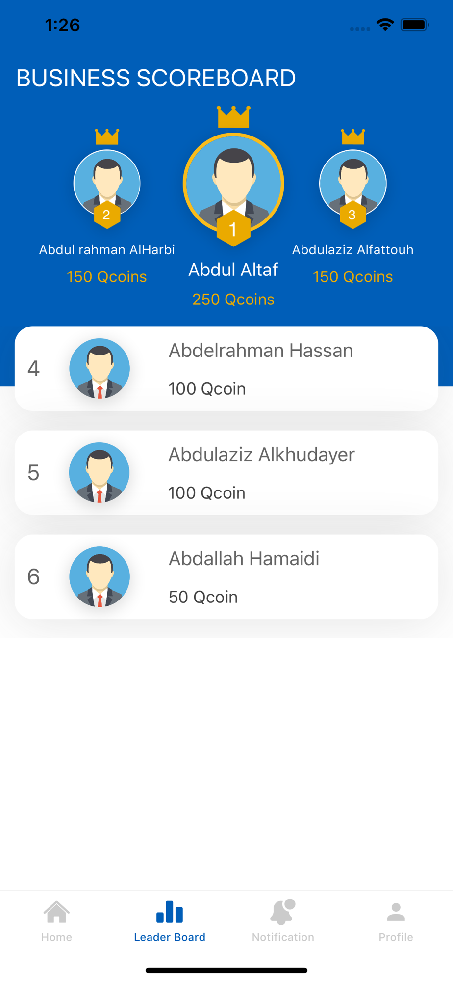 ● Each user will have a profile to view his information & the number of points he/she earned.