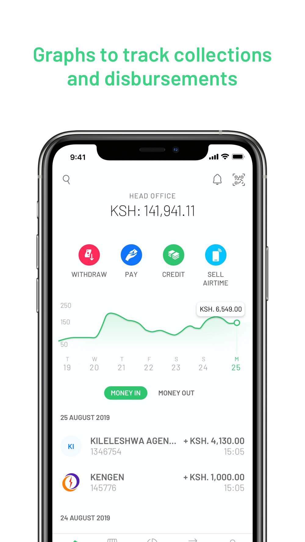 The M-PESA for Business app is the easiest way for M-PESA merchants to transact and track M-PESA collections and disbursements.