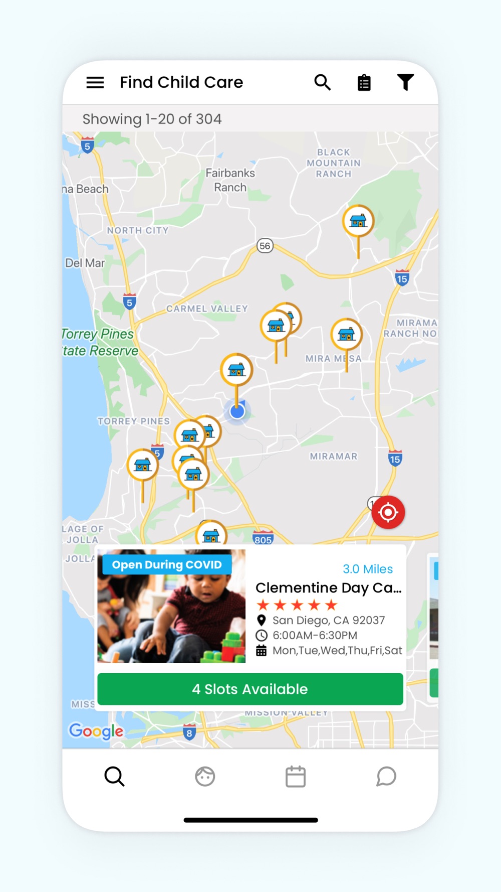 • With one tap see Child Care providers in your area