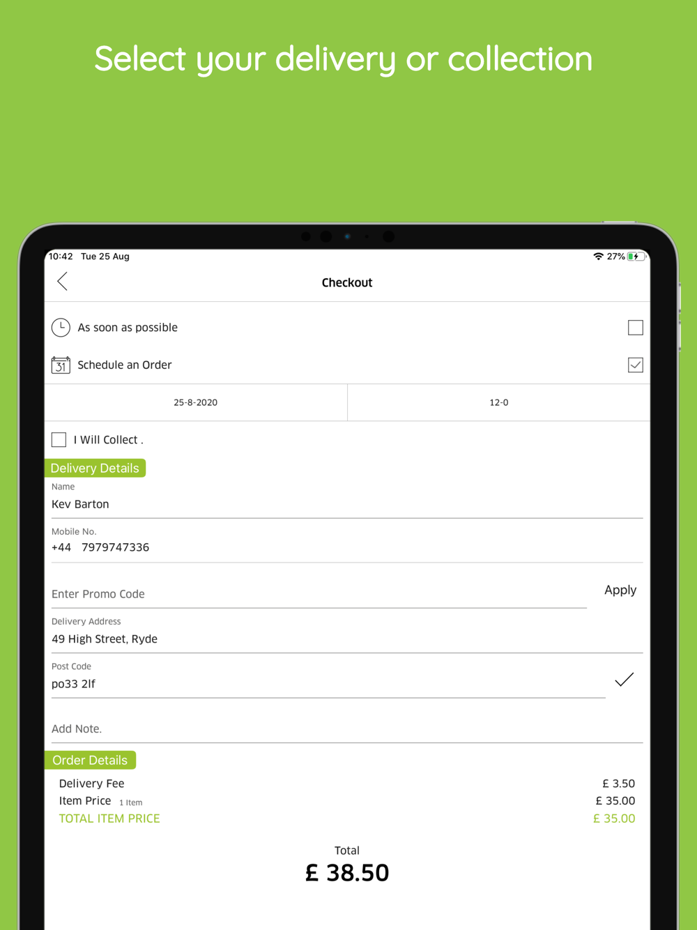 Pay using cash or card and then choose delivery or collection