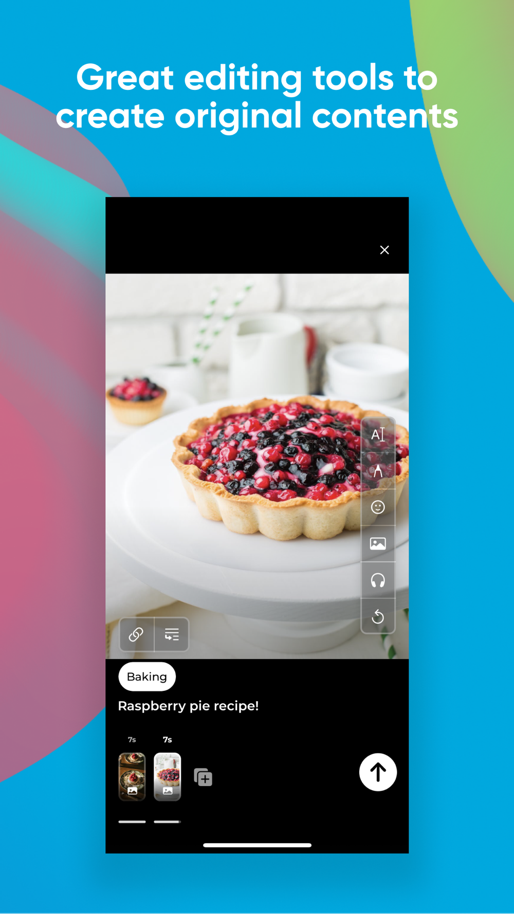 Create beautiful profile showing your talents - let it be art, music or dance. You can also pin other's videos to your profile. We provide a variety of editing tools to animate your static photos and make your profile look great. We value creative contents, so go ahead and upload whatever you are passionate about.