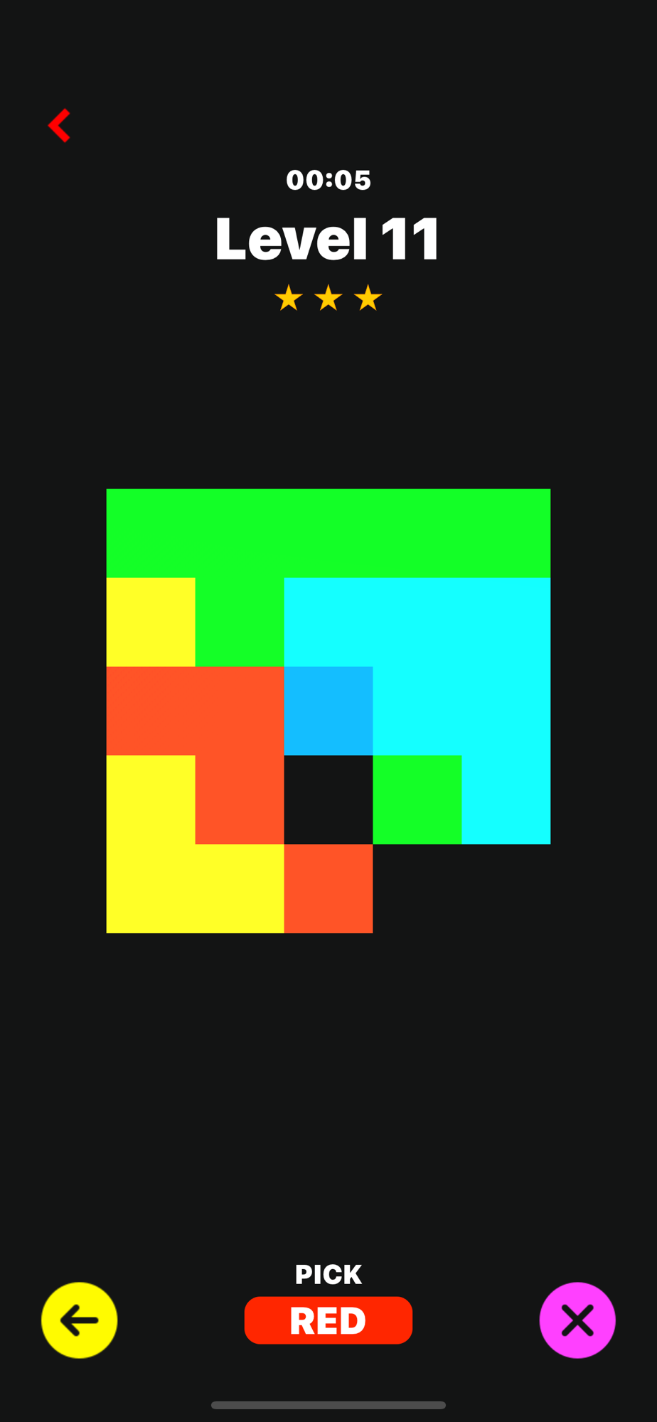 The goal of the game is simple: Remove all tiles color by color until you're left with an empty board.