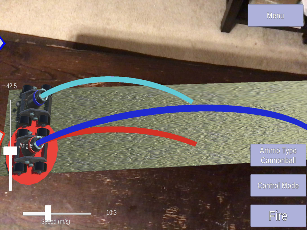 The AR Projectile Lab is an app to help you visualize and understand projectile motion at home. Watch cannons fire across your room and see their trajectories from every angle. Learn the relationships between mass, angles, velocity, flight time and range by seeing it happen instead of staring at equations.