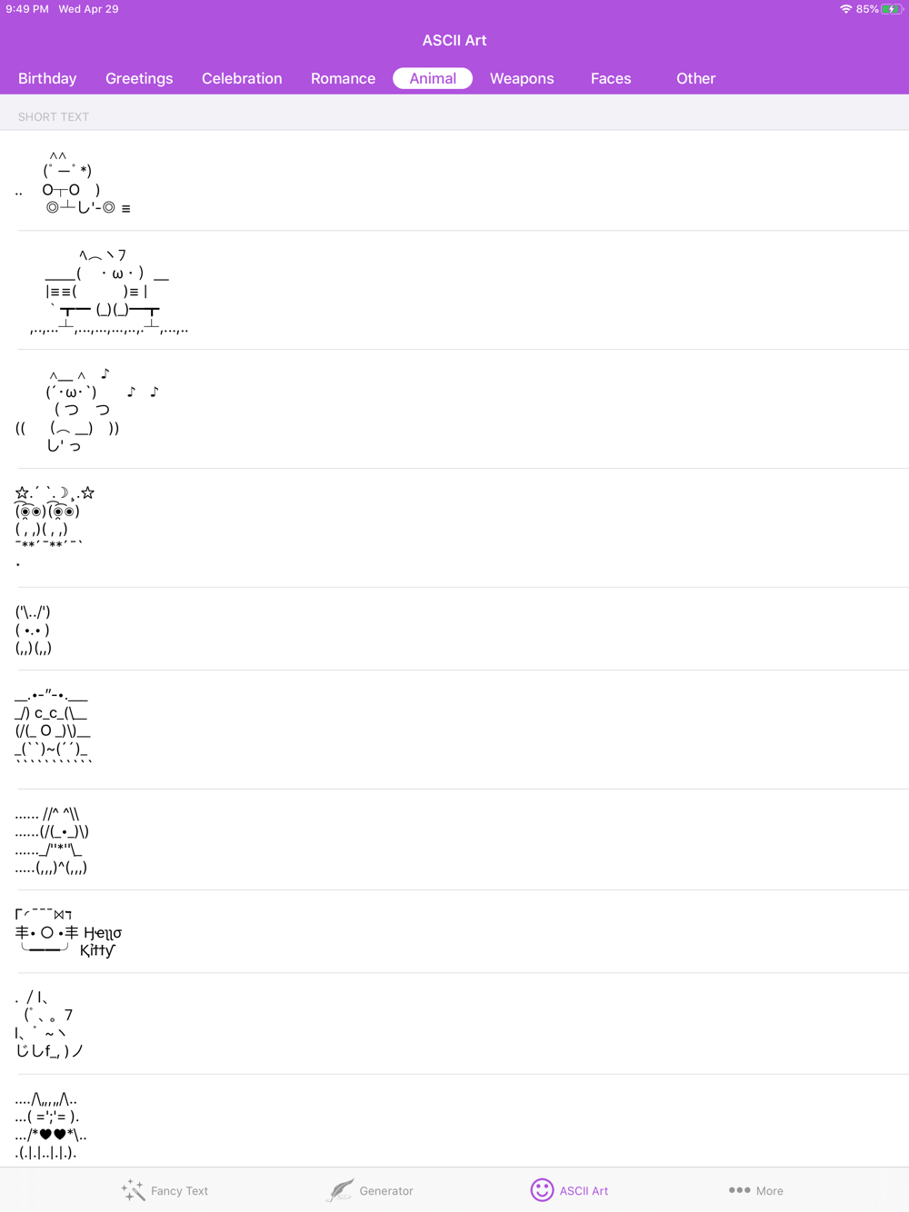 ㋡ Fancy Text Symbols is a handy tool that helps convert normal text and numbers to different stylish cool text, containing over 120 different fonts styles and is completely free. Just click on a style to copy it to the clipboard and paste it anywhere you want.