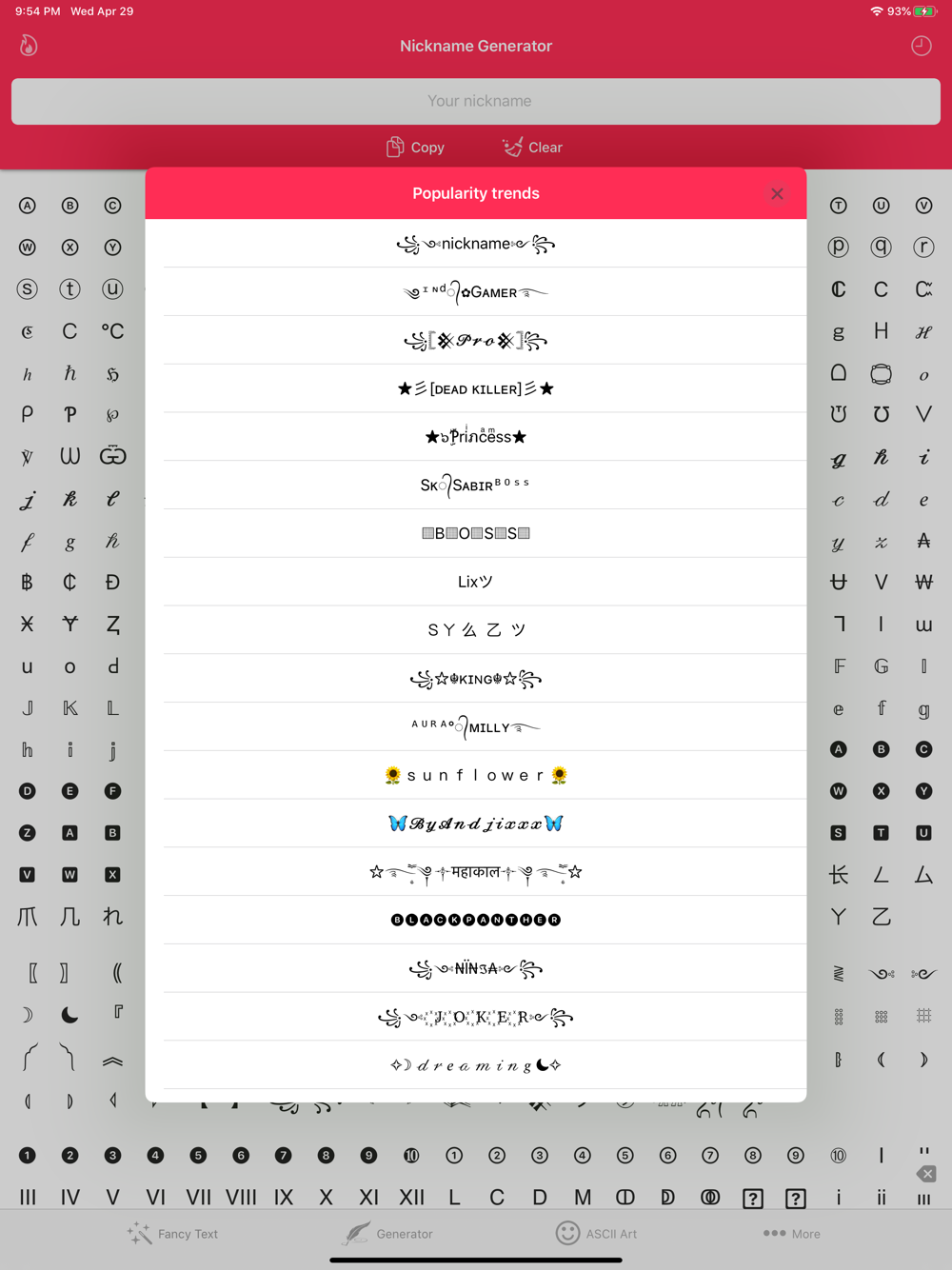 ㋡ Creating a striking nick name with your own style and personality for games or social network accounts (such as PUBG, Free Fire, Instagram, Facebook etc.) has never been so easy that you can make it right on your phone.