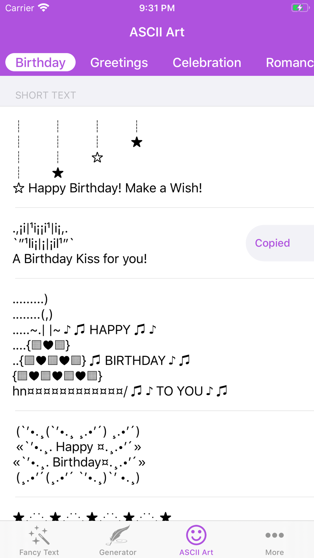 ๏ More than 300 custom-made text art ready for you to send your message to the recipient.
