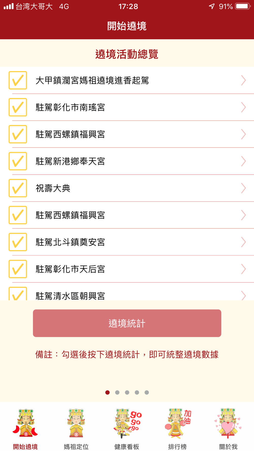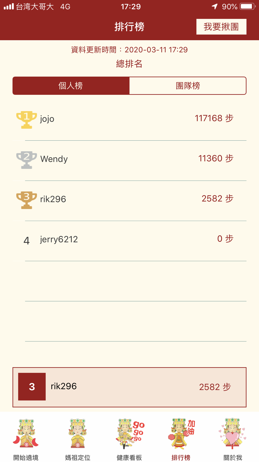 與遶境活動同步進行,遶境期間的步數、距離、時間,換算出虔誠指數,走越多,越虔誠!