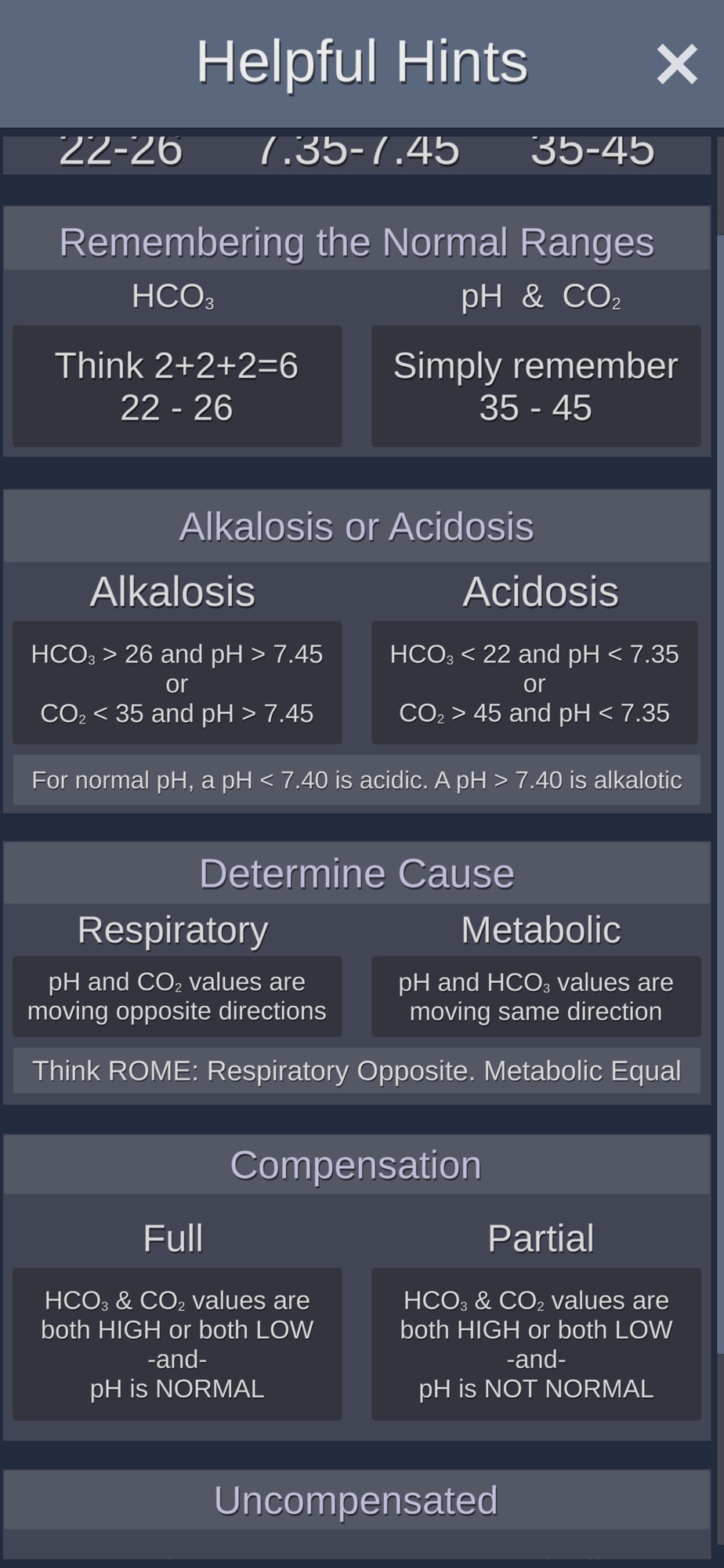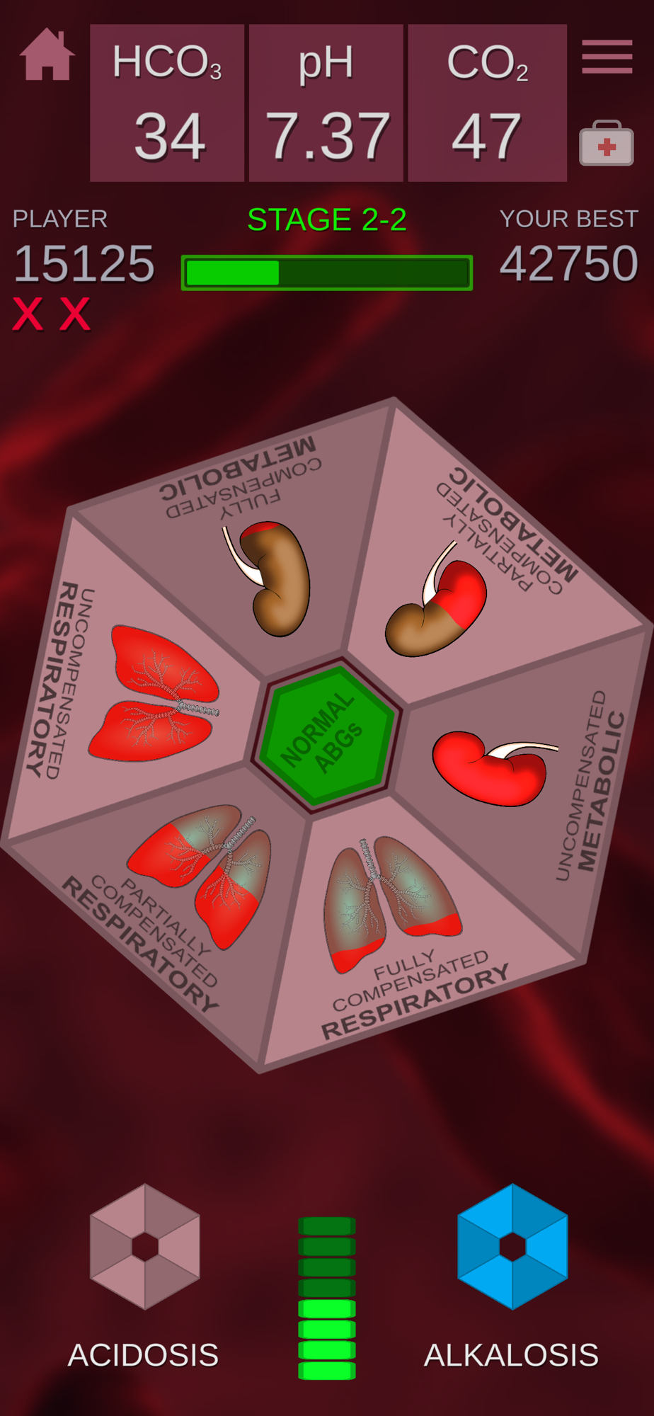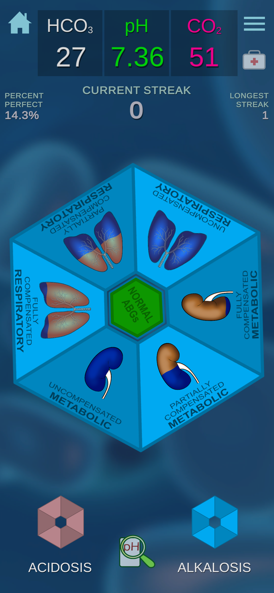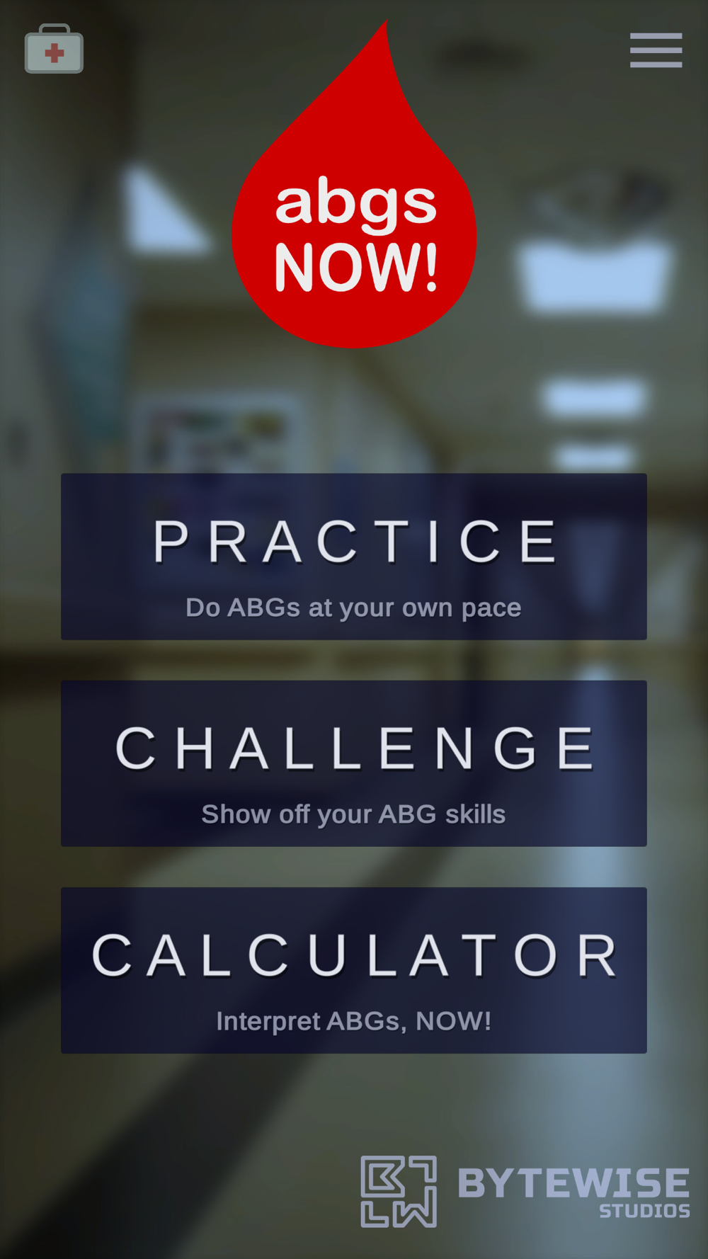 ABGs NOW!™ is a fun, engaging way for both students and professionals to strengthen their knowledge of arterial blood gases. The app features a calculator, providing immediate answers, a practice mode that guides the learner with helpful hints, and a challenge mode where learners can put their ABG skills to the test. Both practice and challenge modes provide detailed analysis for any missed interpretations. ​