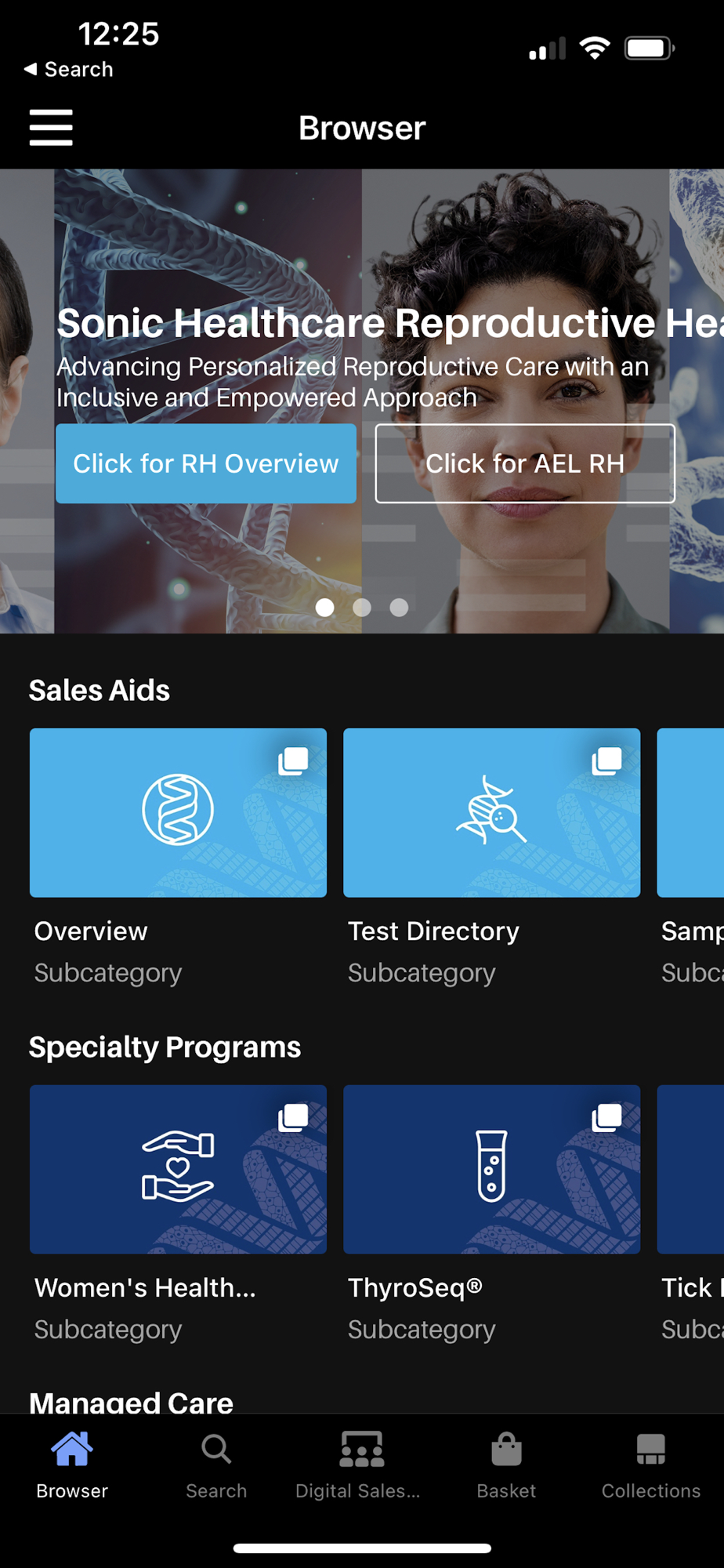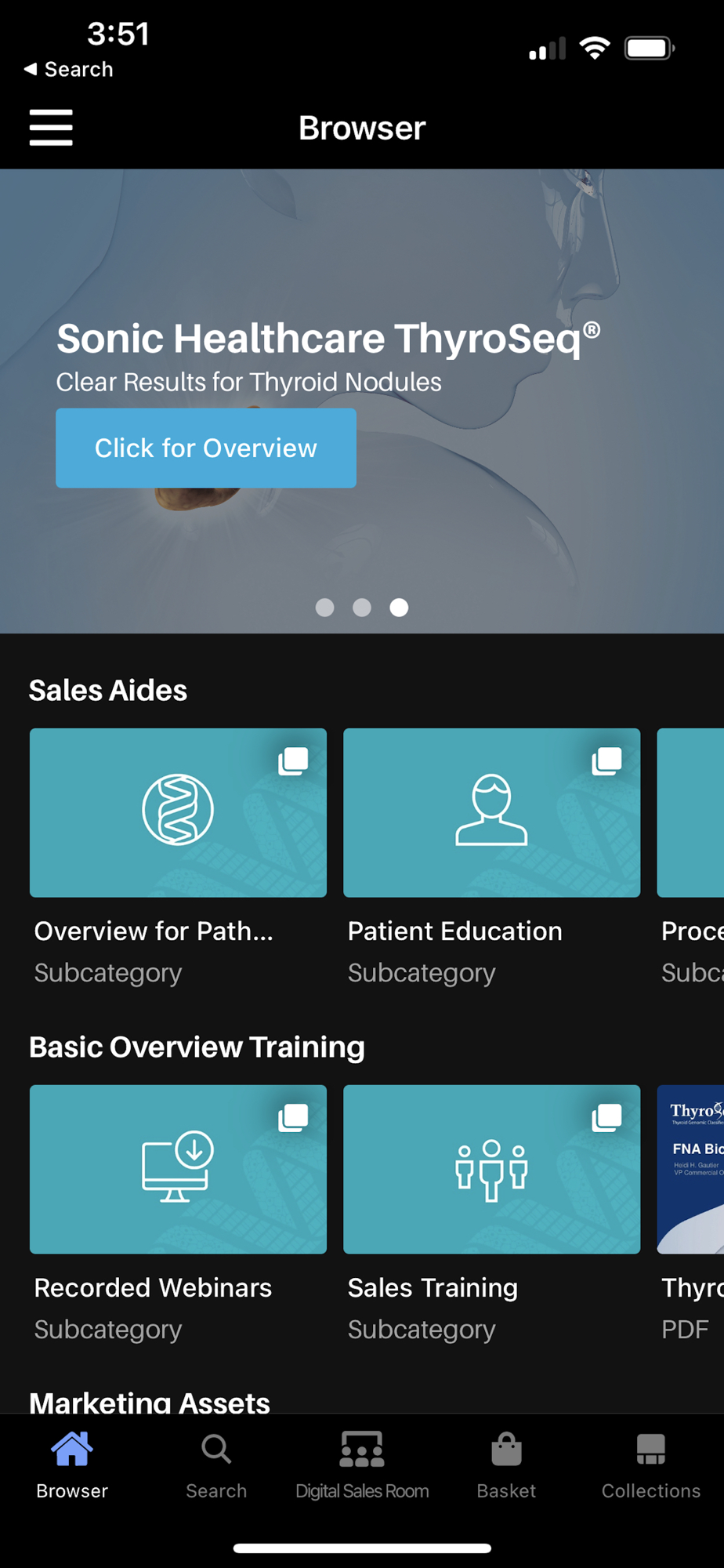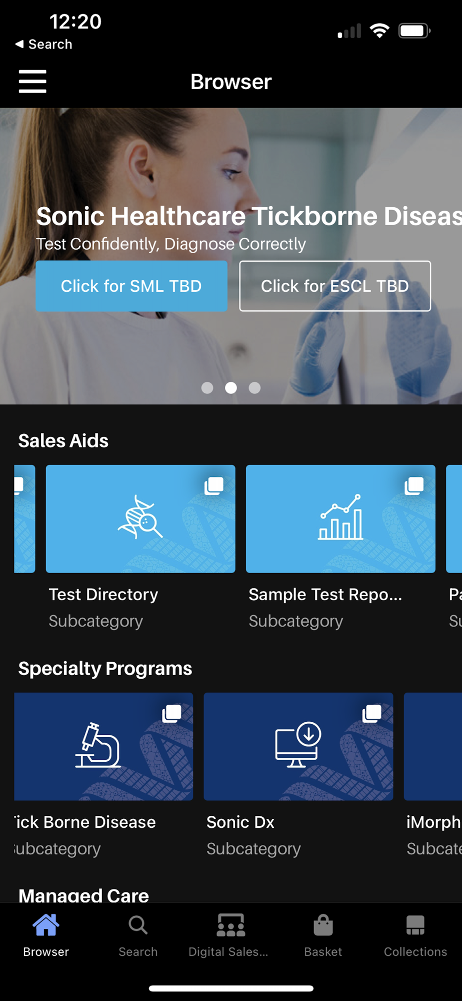 Sonic Healthcare is updating your app experience with a brand new interface! Included in this new update are new capabilities such as adding your most used assets to your Basket, Favoriting content, and creating Collections to share with your customers, along with more new features!