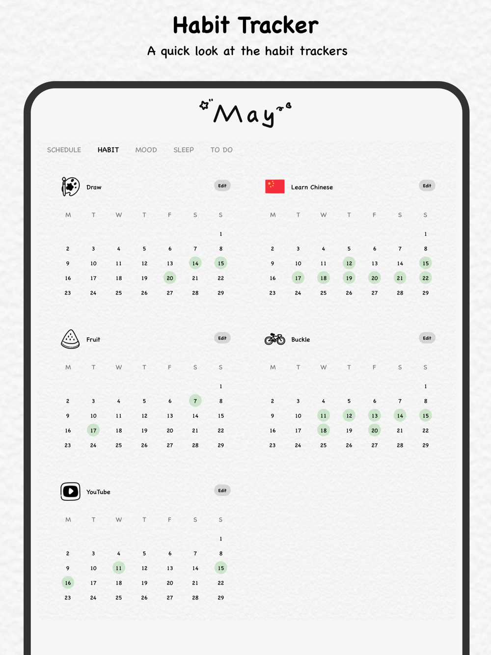 You can trace a journal, diary, habits, tasks, notes, fitness tracker, mood, or planner, monthly spread, and mood tracer in one app.