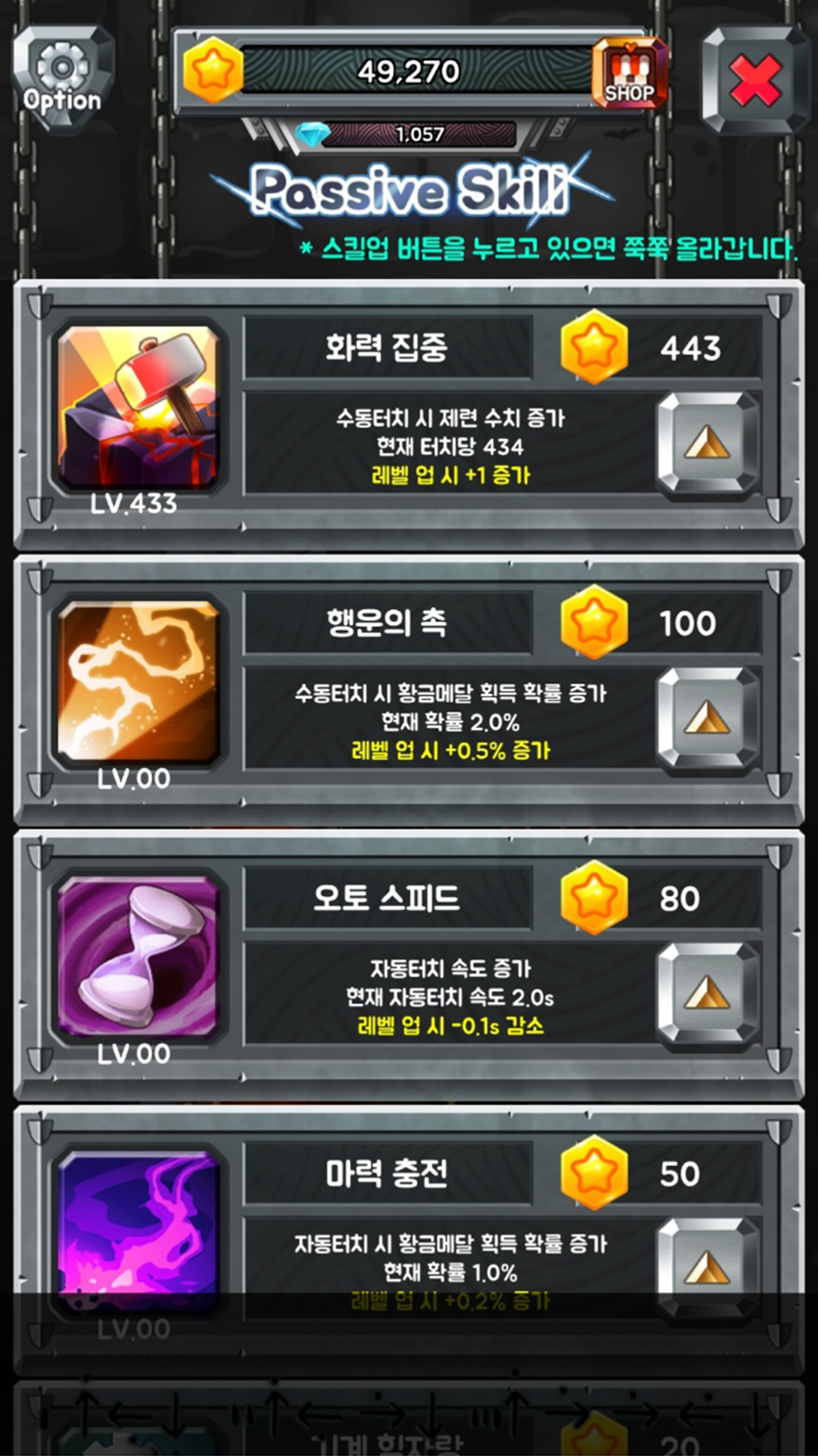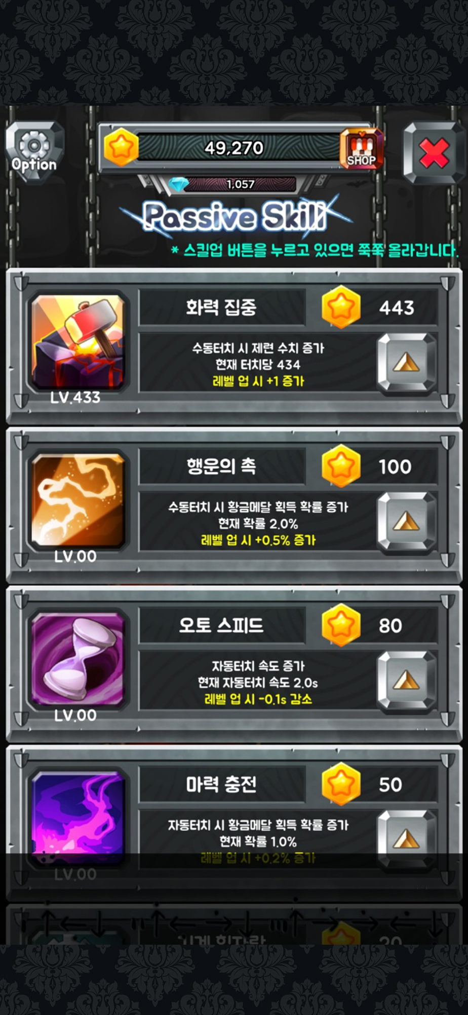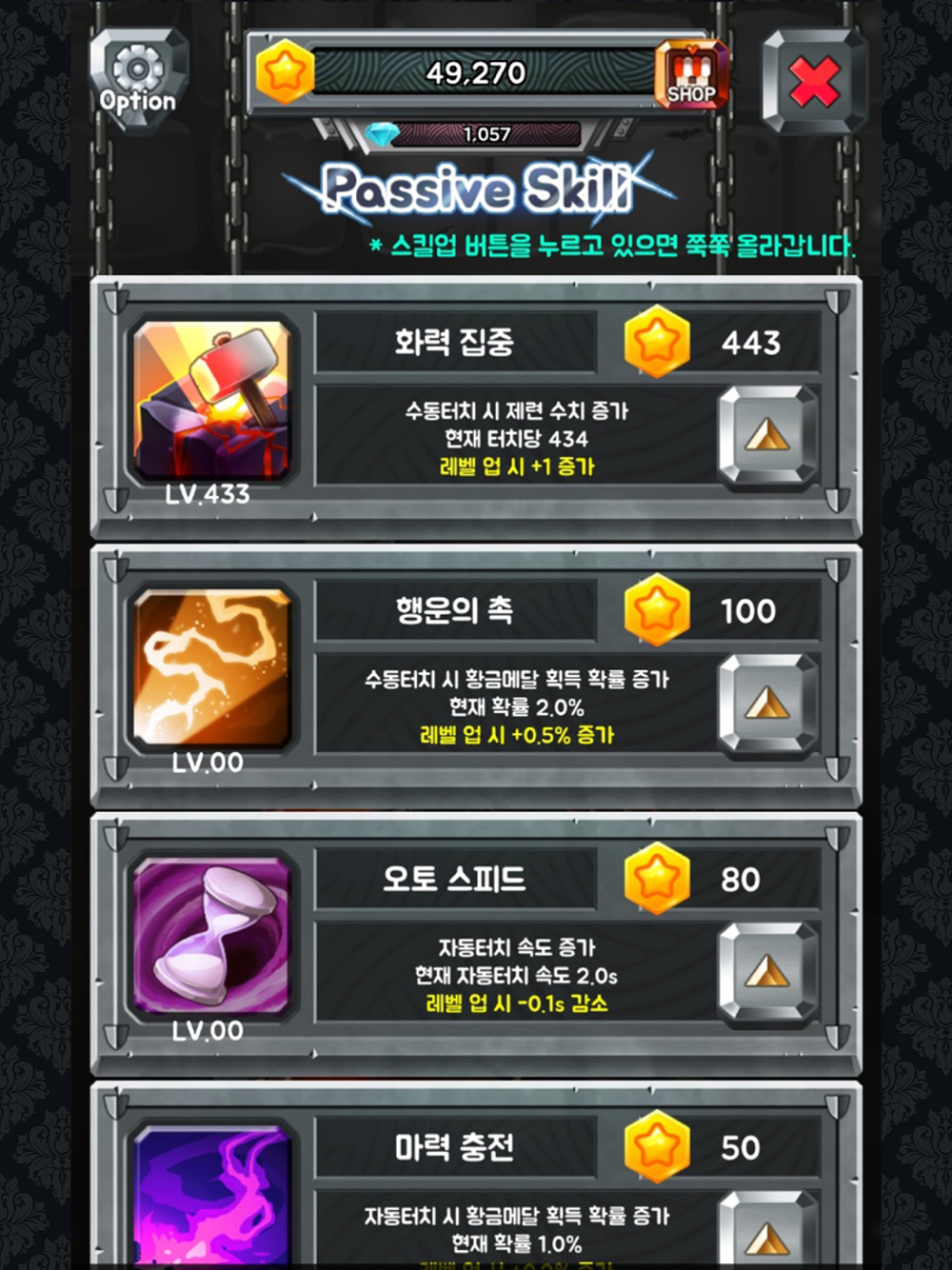 - 다양한 패시브 스킬을 올려서 더욱 강력한 방패를 만들어보세요!