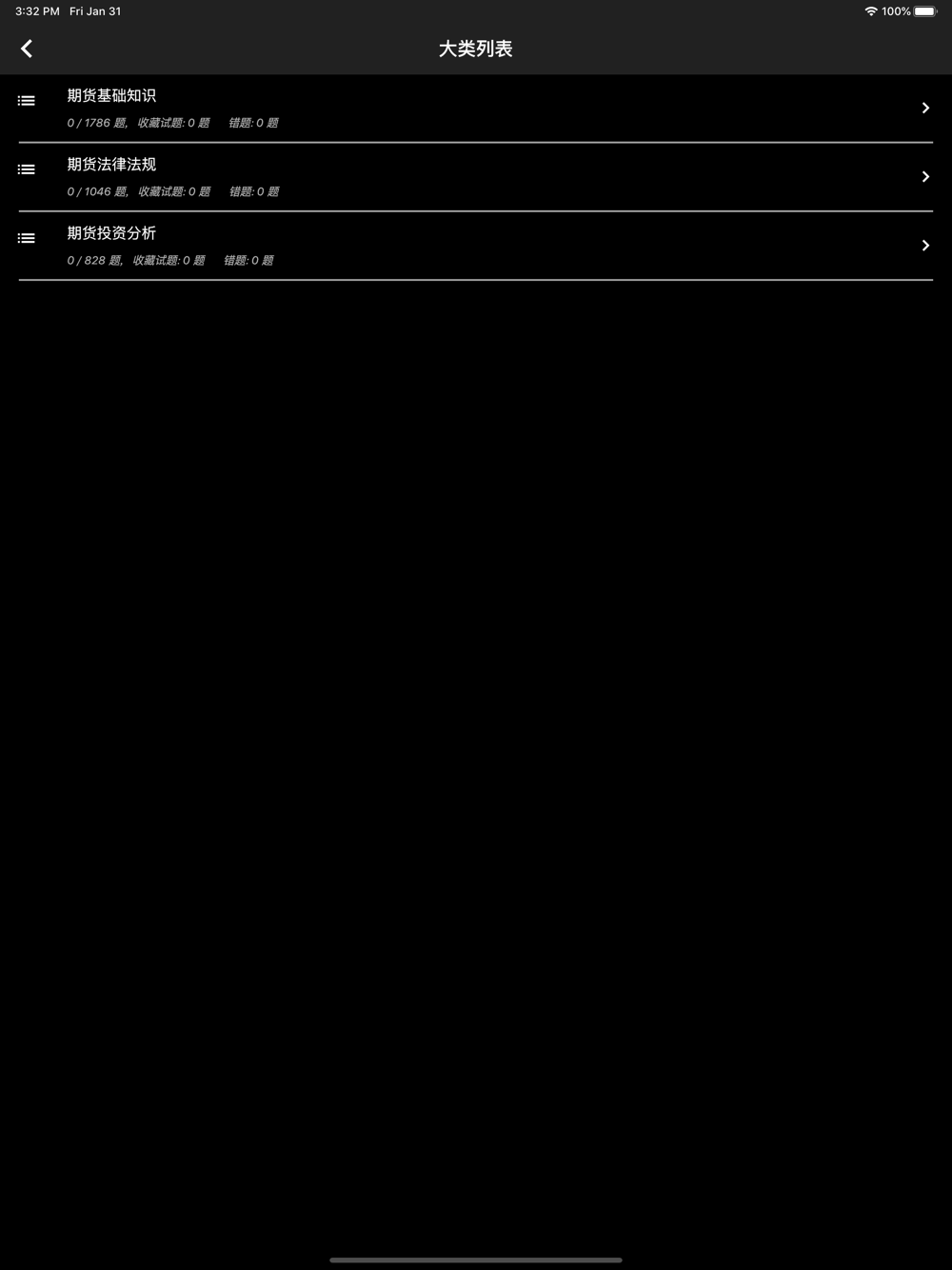 包括 期货基础知识、期货法律知识、期货投资分析 的上千道试题