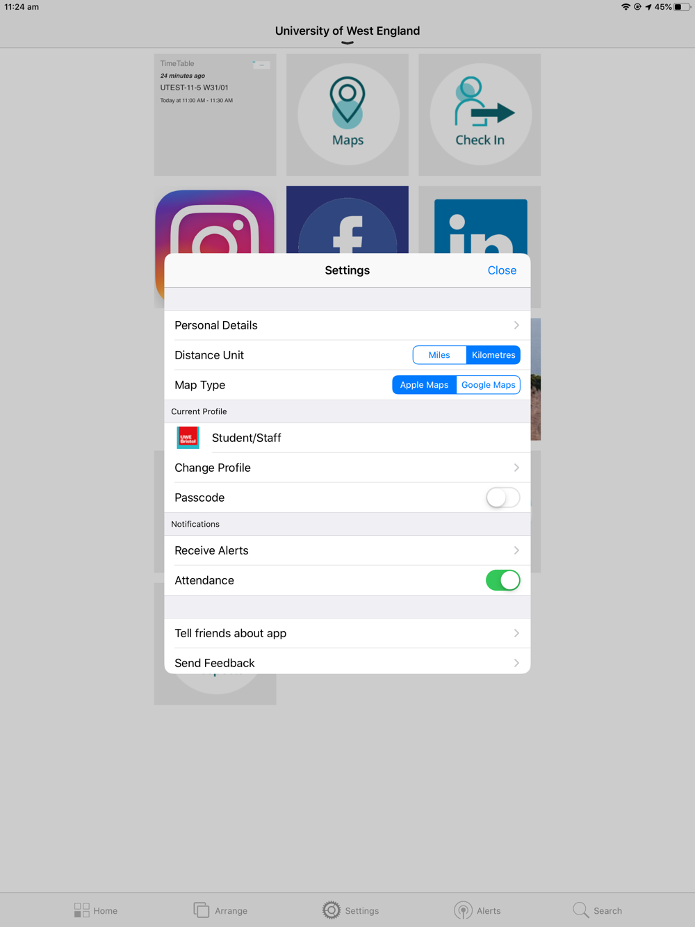 UWE Bristol MyAttendance 10.45.0 Update