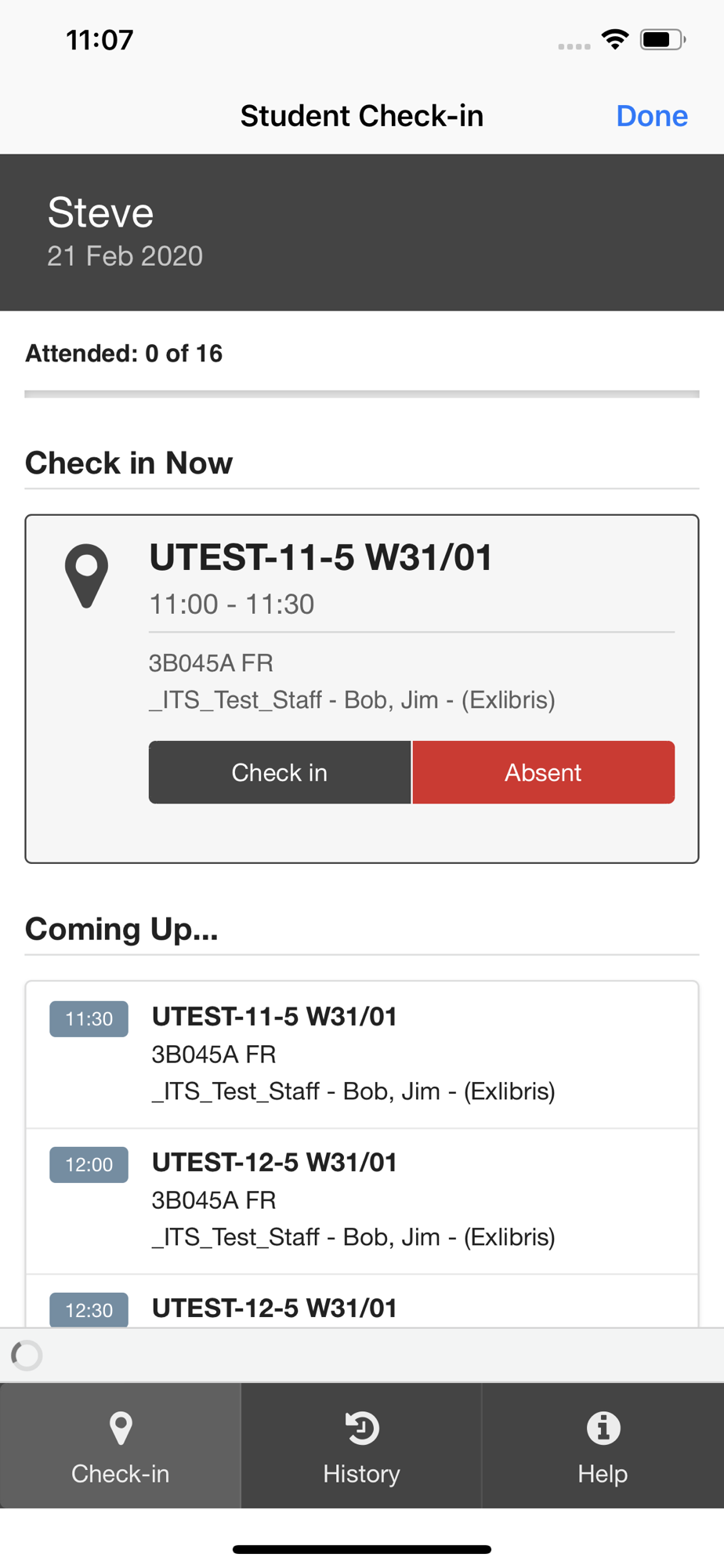Attendance Recording for current UWE Bristol Students.