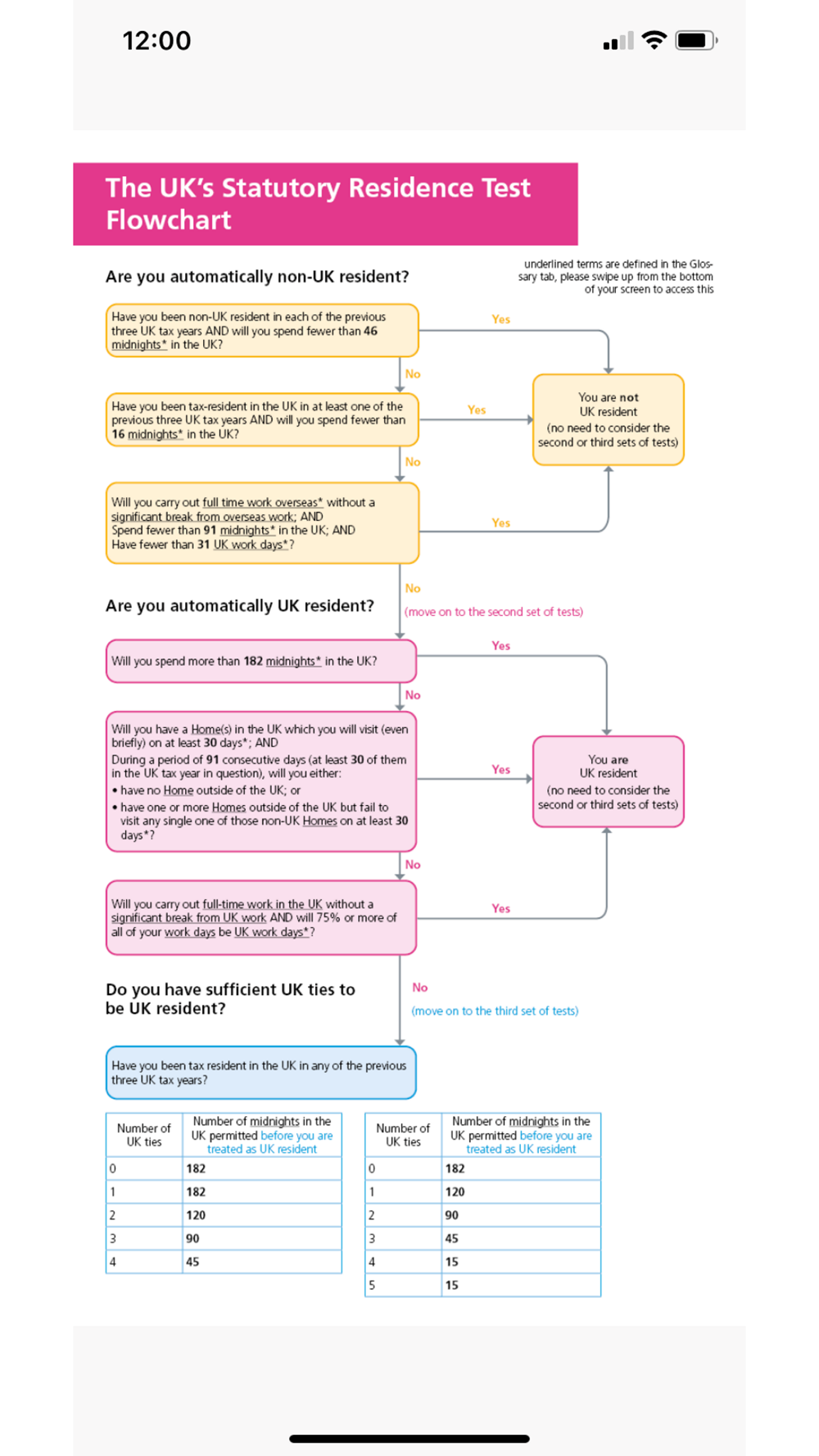 The ResiCheck App is intended as a guide to UK residency status and not the tax consequences of being resident or not resident. It should not be relied on in place of legal advice. The SRT is complex and an app cannot take into account all possible variables.