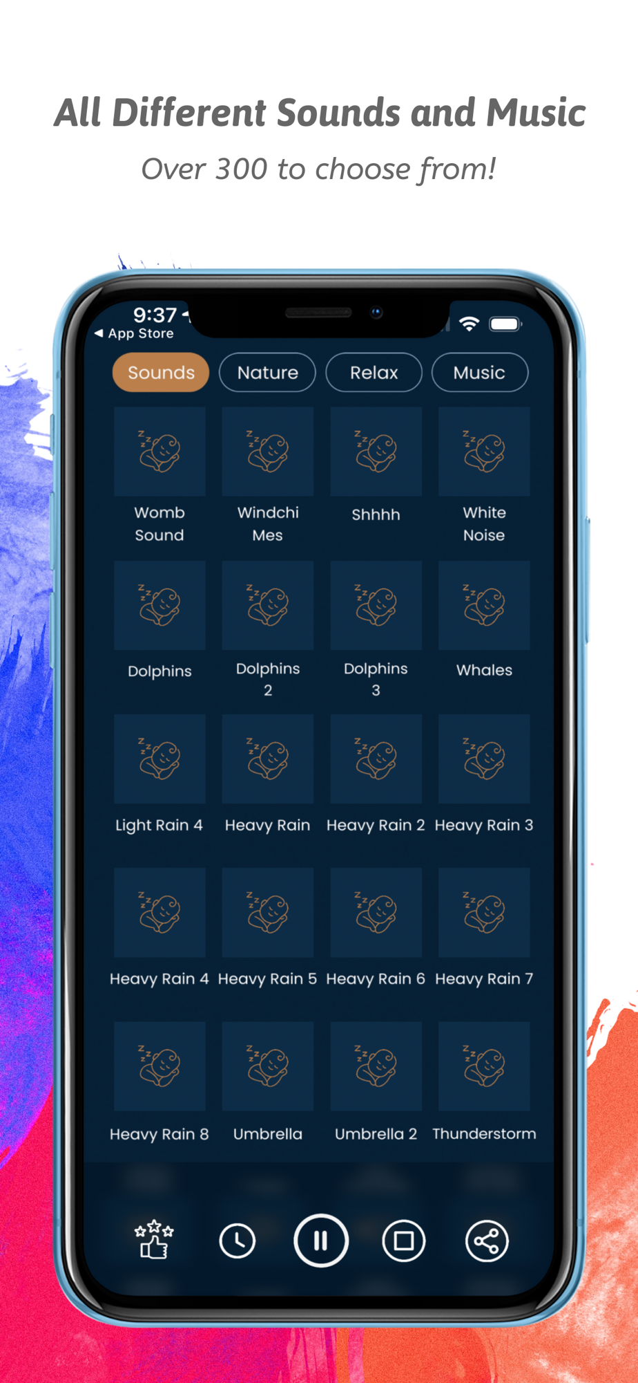 Sometimes babies need to hear one sound to calm and fall asleep, but often they don’t calm to the same sounds every day. Here is where you get to try and combine 300+ of baby sleeping sounds including White Noise, Womb, Ocean, Waterfall, Birds, Underwater, Frogs, Cicadas, Railway, Hair Dryer, Heartbeat, Night, Dryer, Vacuum, Lightning, Wind, Crowd, Classic Music, Car Ride, Fireplace, Rivers, Streams, Thunderstorm, Storm and many more sounds of nature.