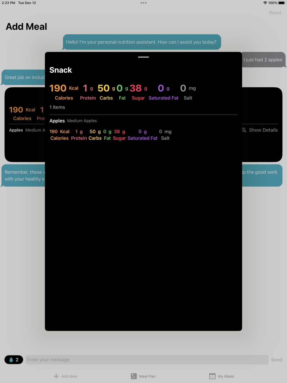 Just chat about your meals! Describe what you ate, and our AI will log it for you.